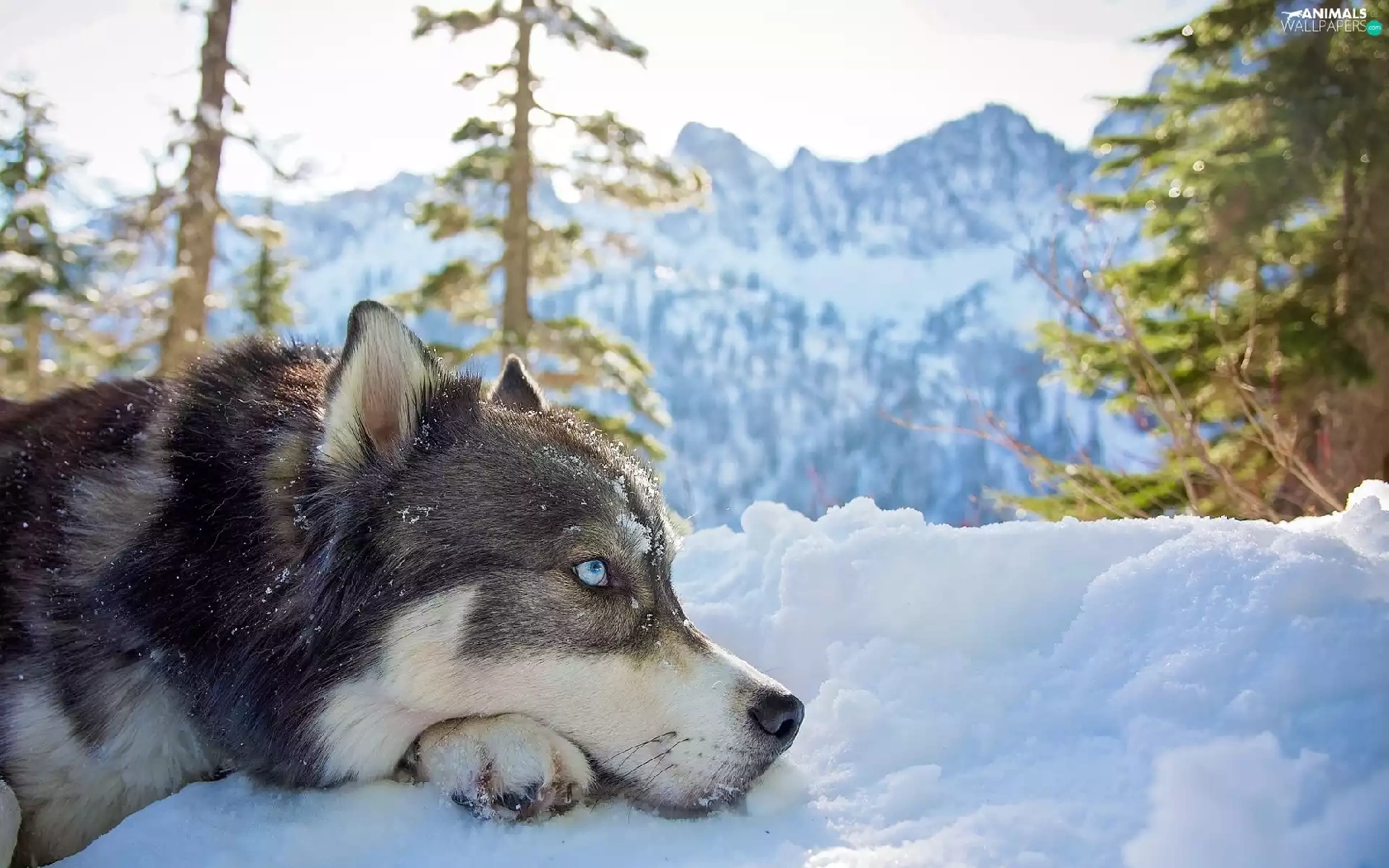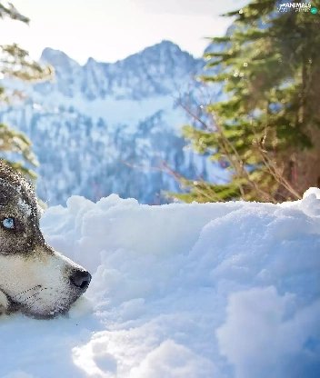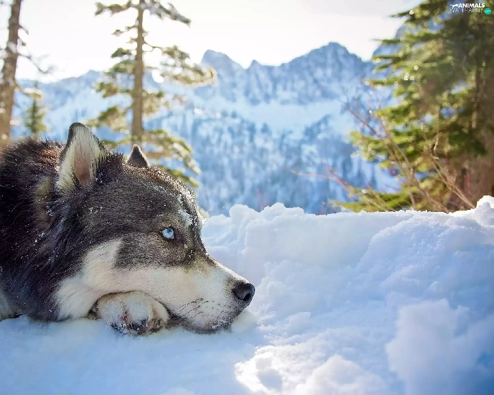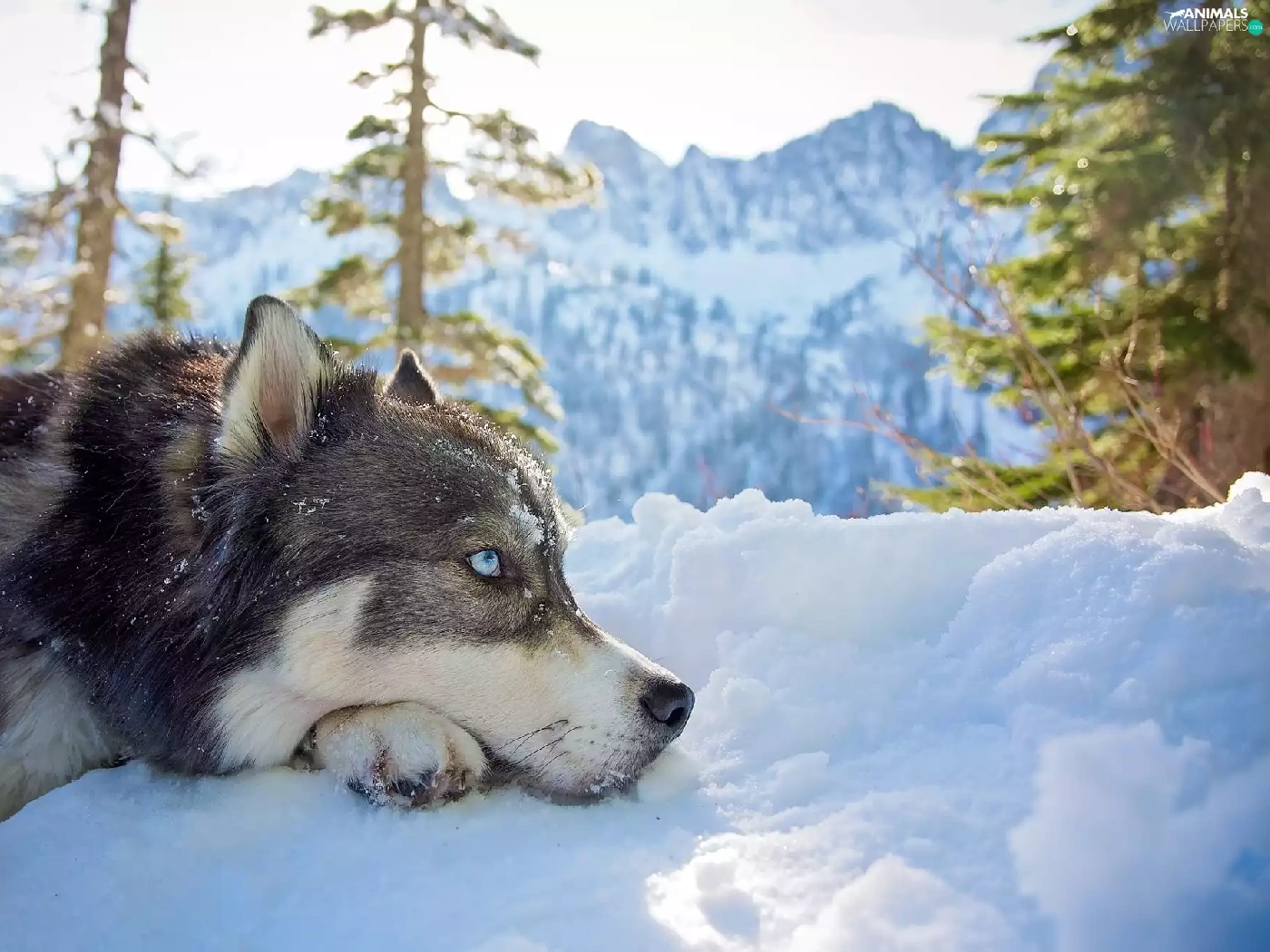 Siberian Husky, Mountains, snow, winter