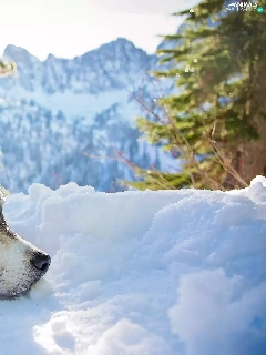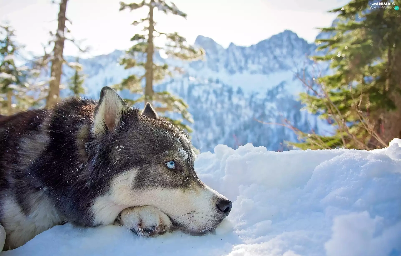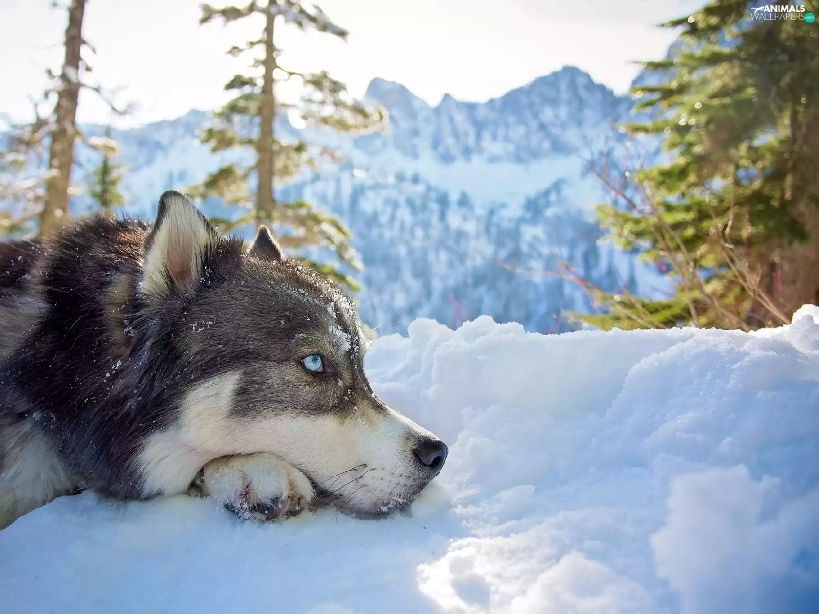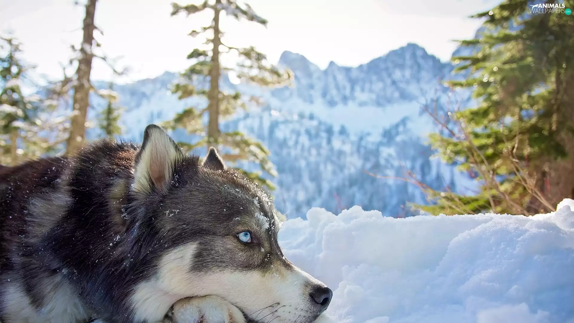 Siberian Husky, Mountains, snow, winter
