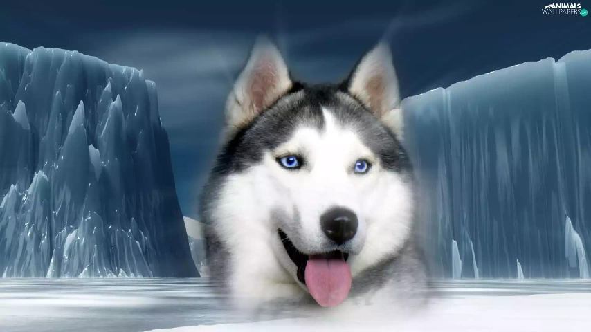 Siberian, Mountains, ice, Husky
