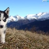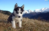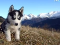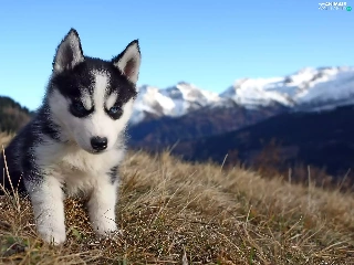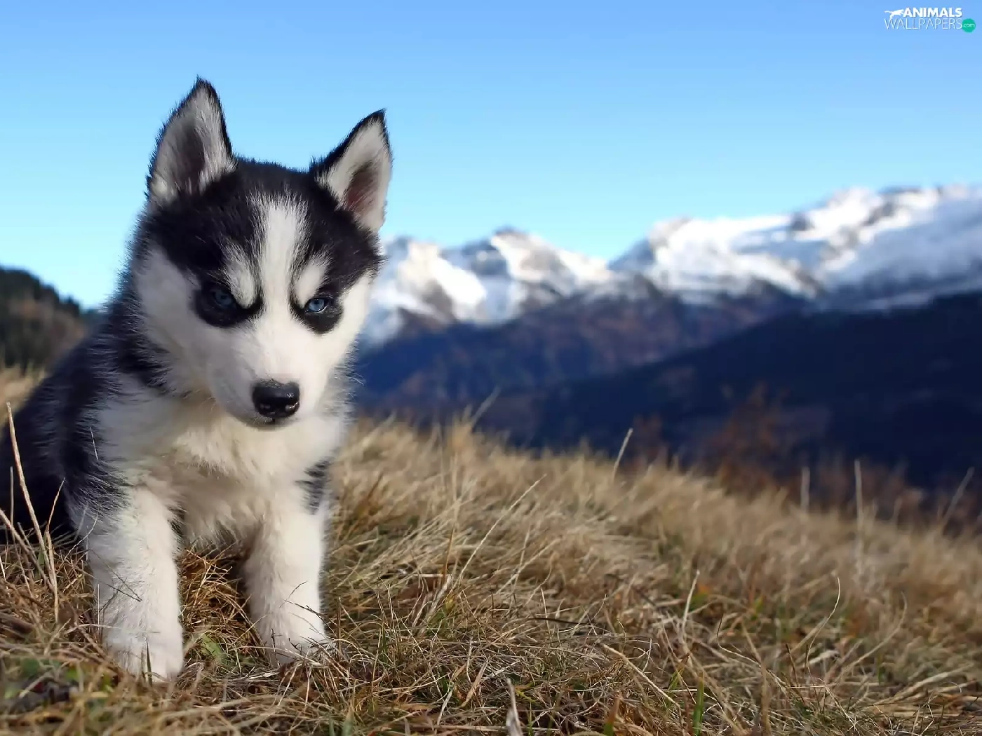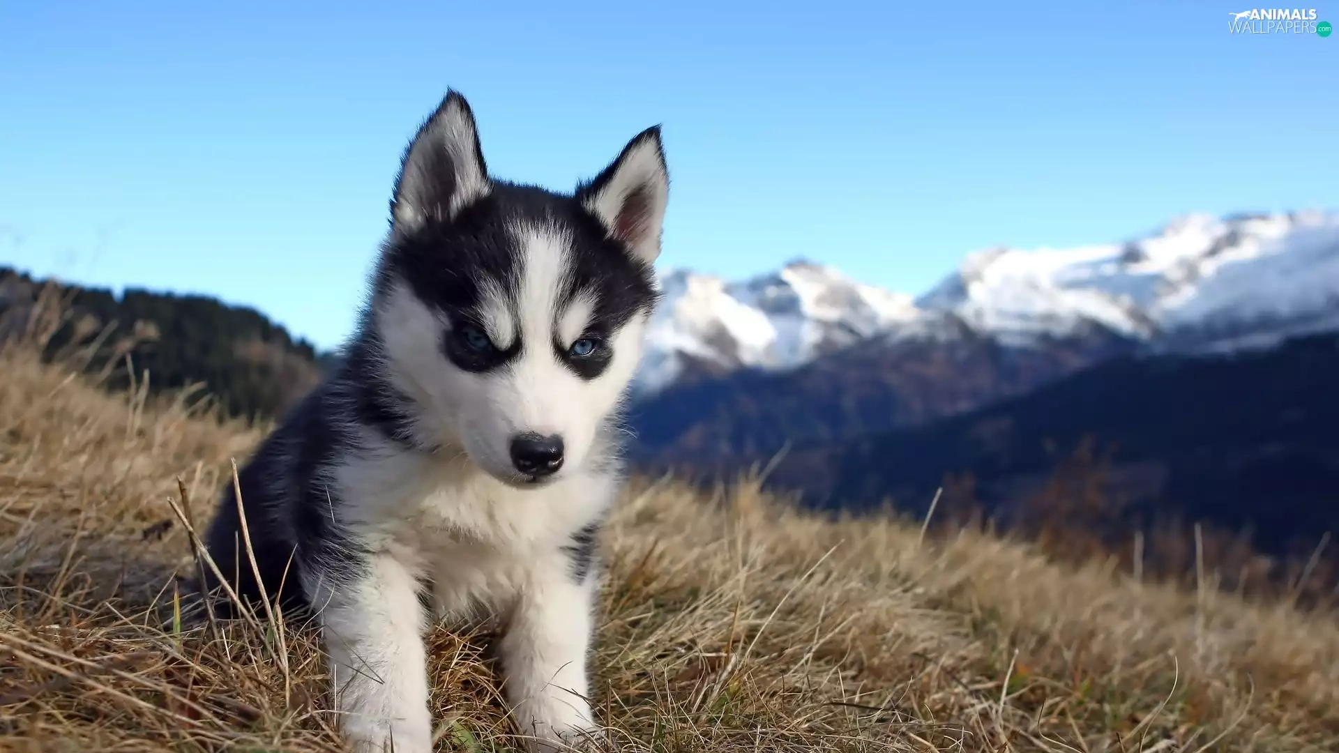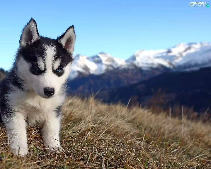 Husky, honeyed, ##, mountains, car in the meadow, puppie