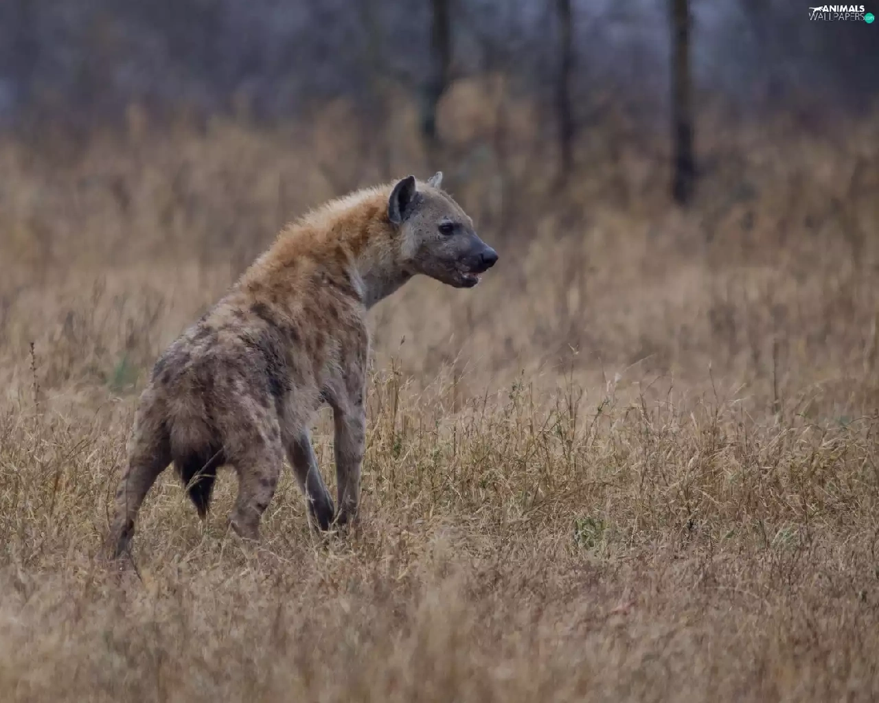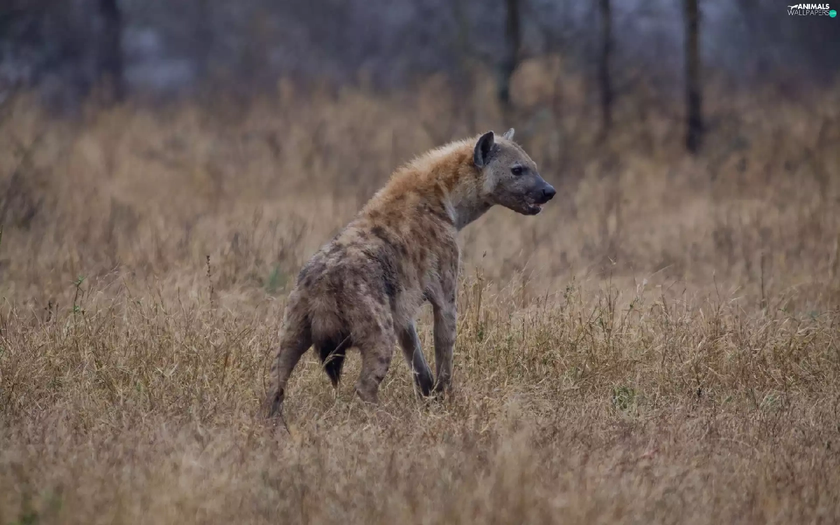 hyena, grass