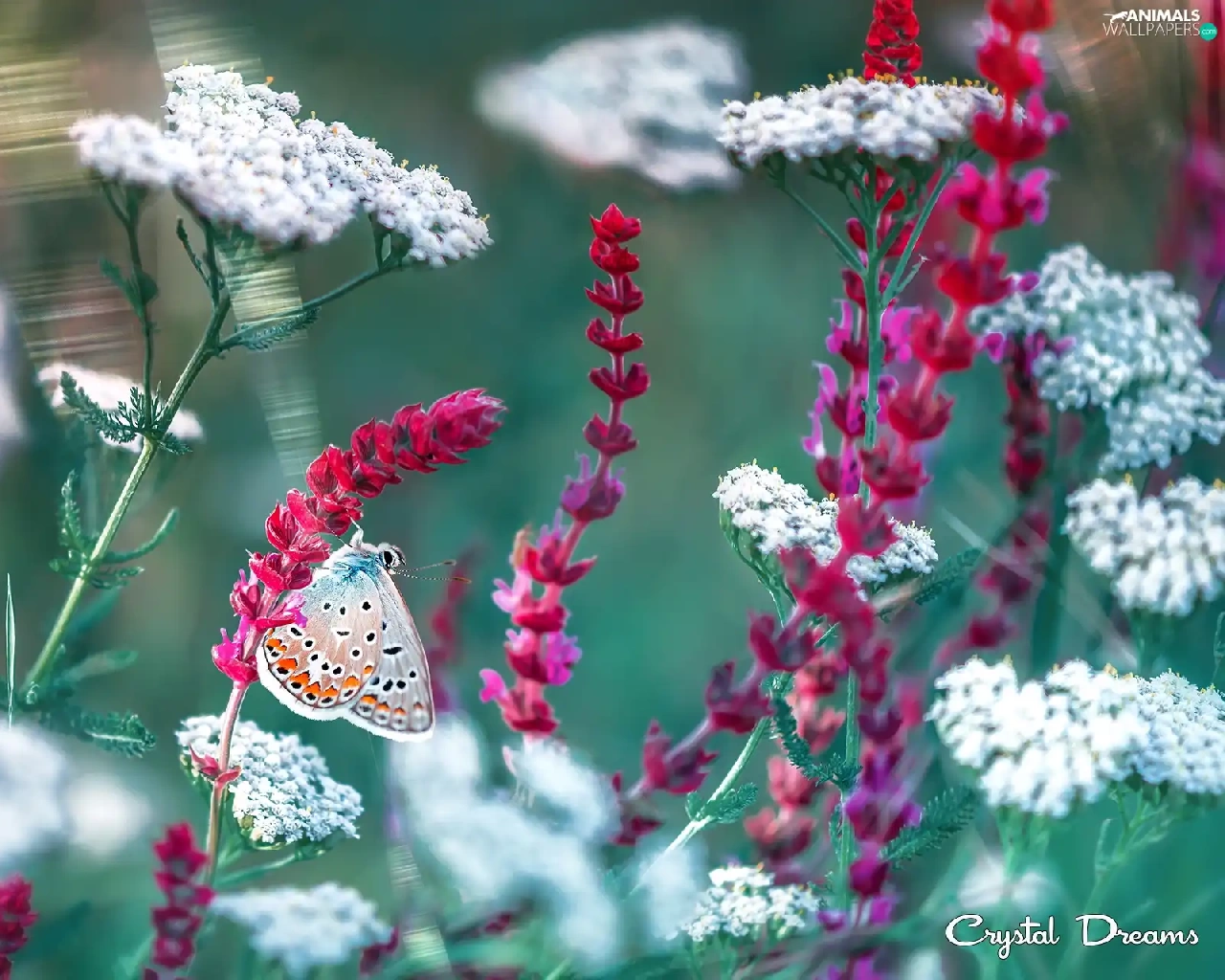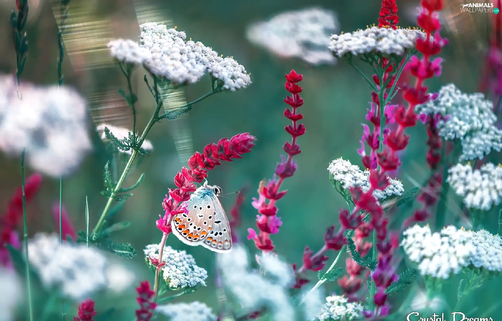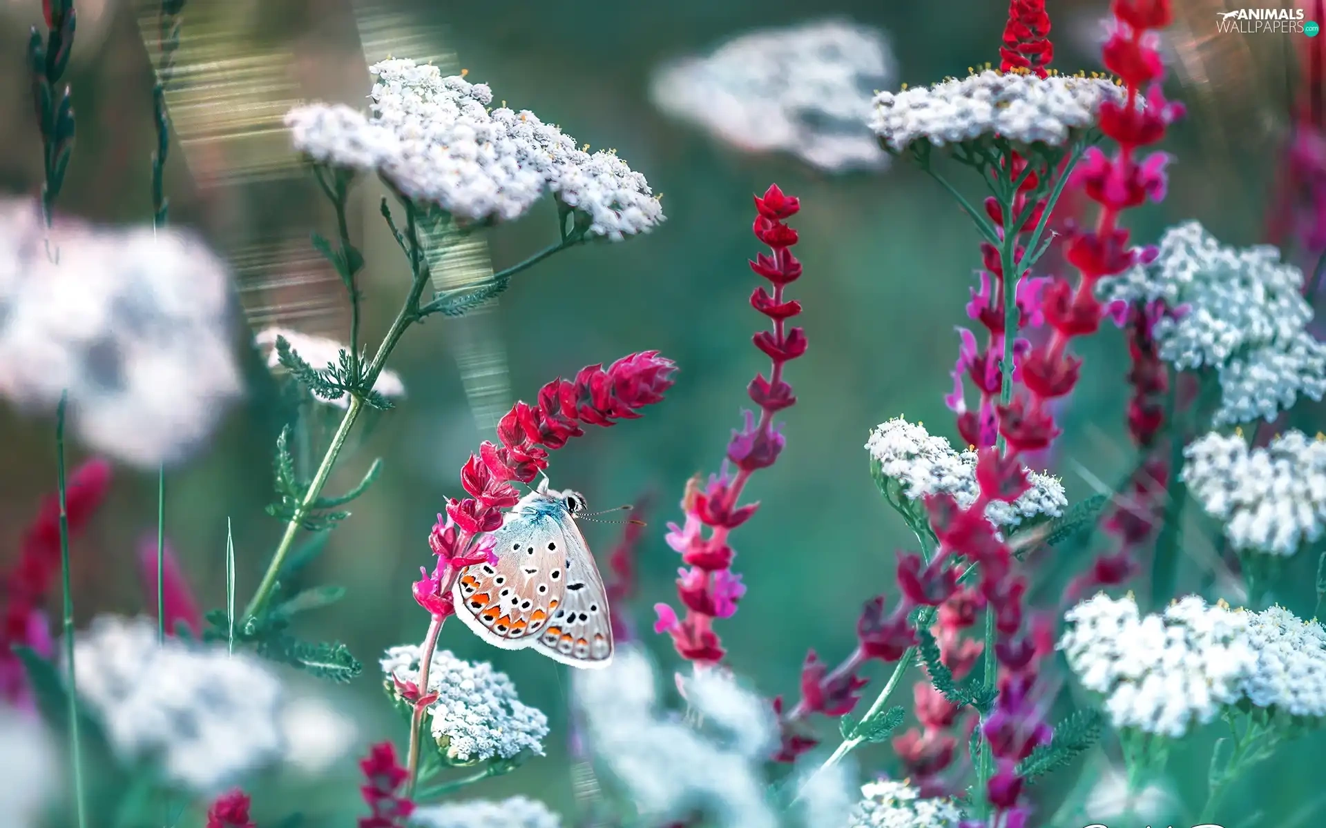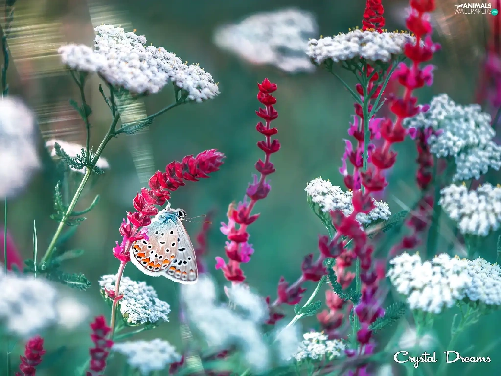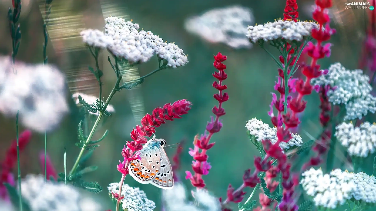 Red, Flowers, Dusky Icarus, White, butterfly