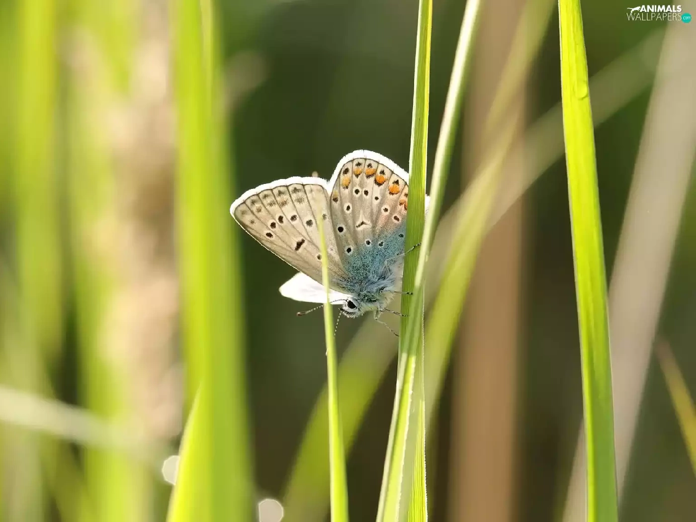 Dusky Icarus, grass, blades, butterfly