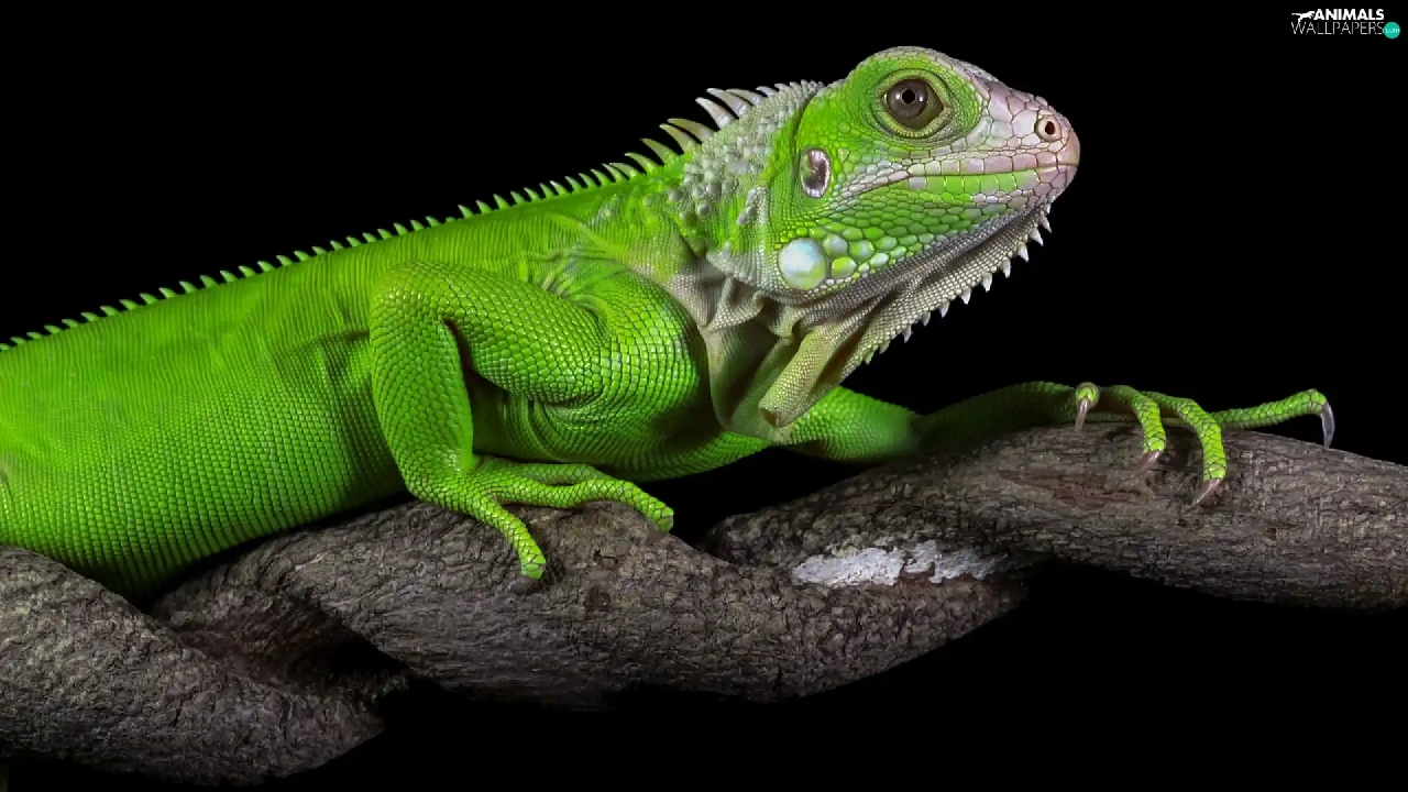 Green Iguana, rapprochement, trees, Iguana