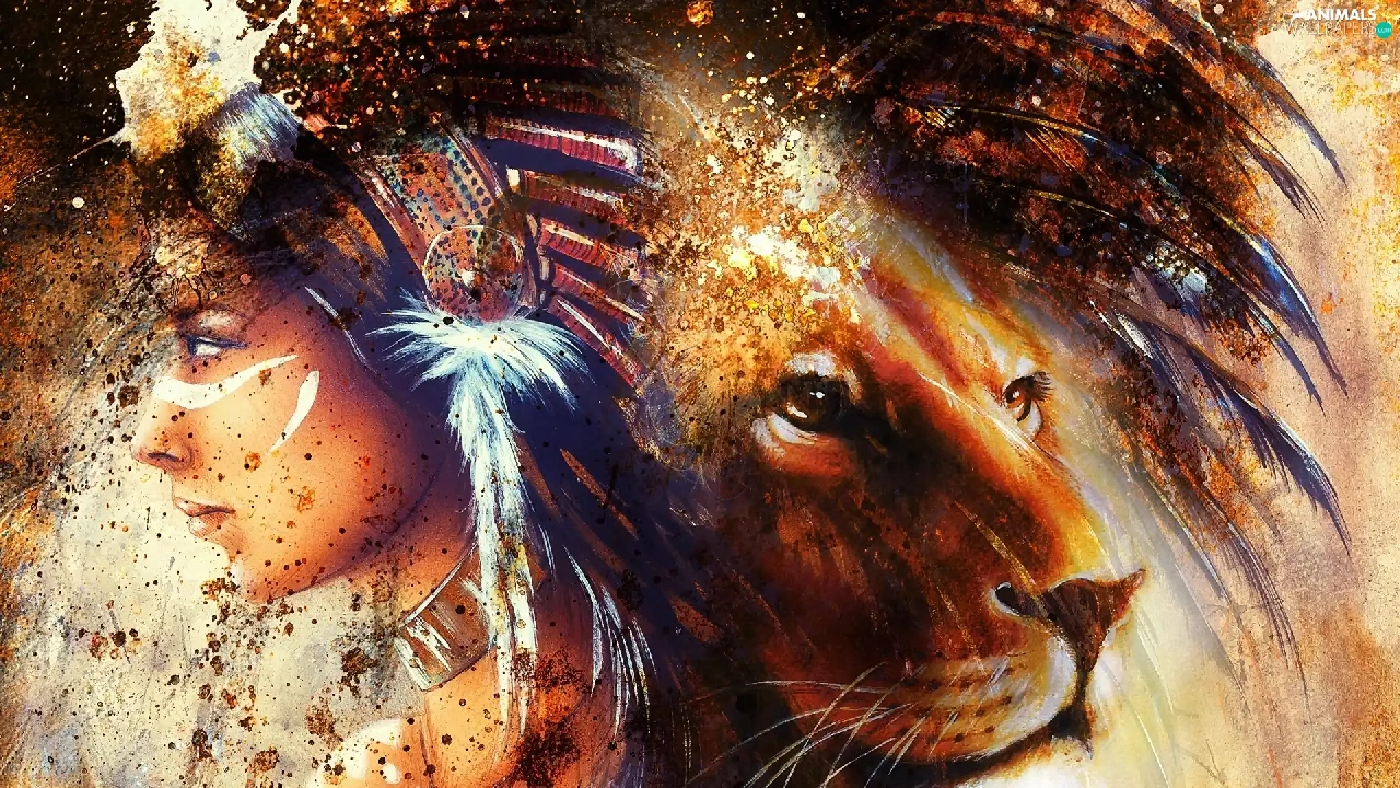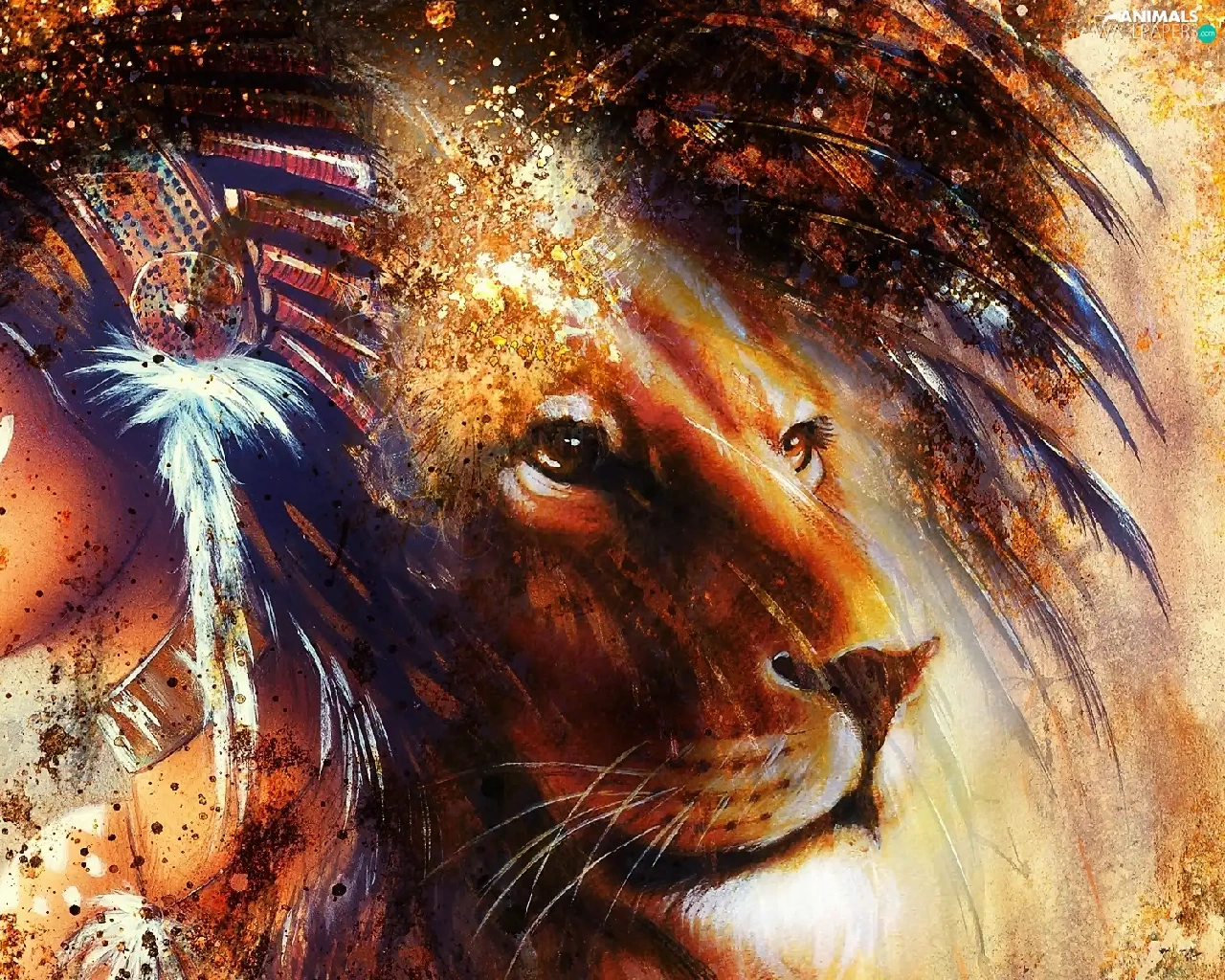 graphics, Lion, Indian, fantasy
