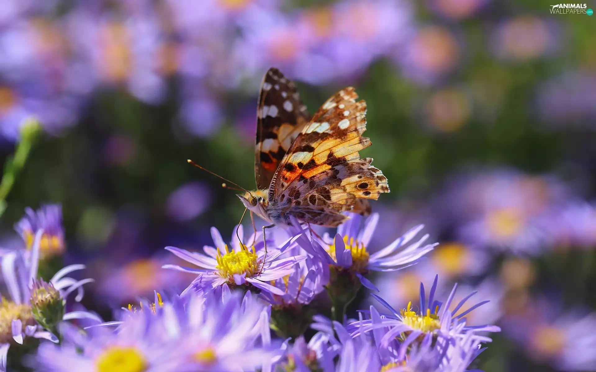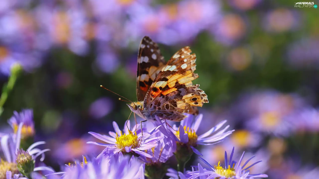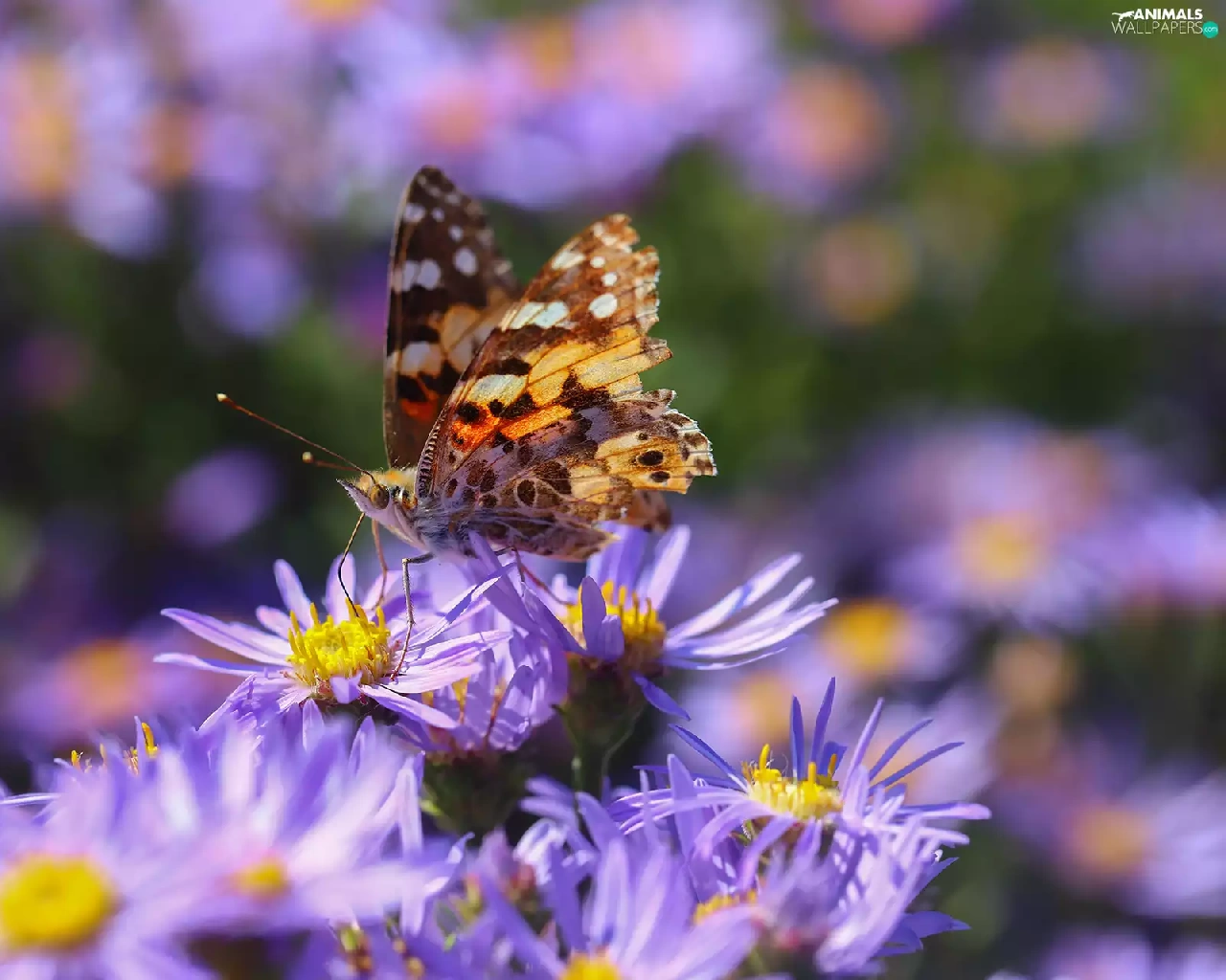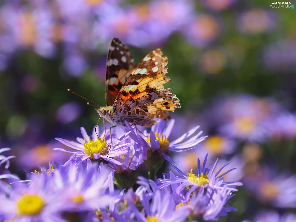 butterfly, Flowers, Astra, Insect