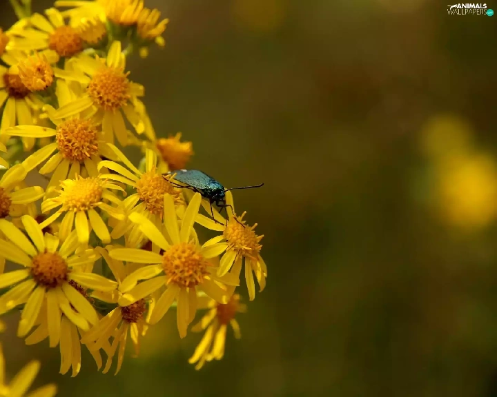 Flowers, Yellow, spring, Insect, old man, Wildflowers