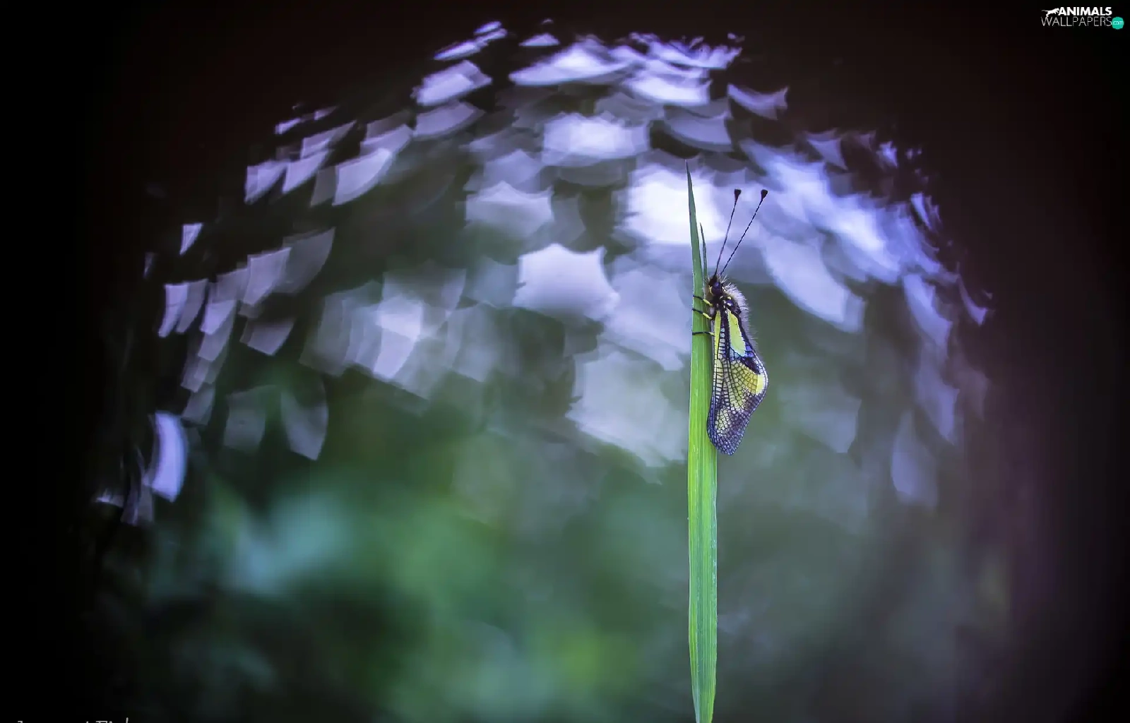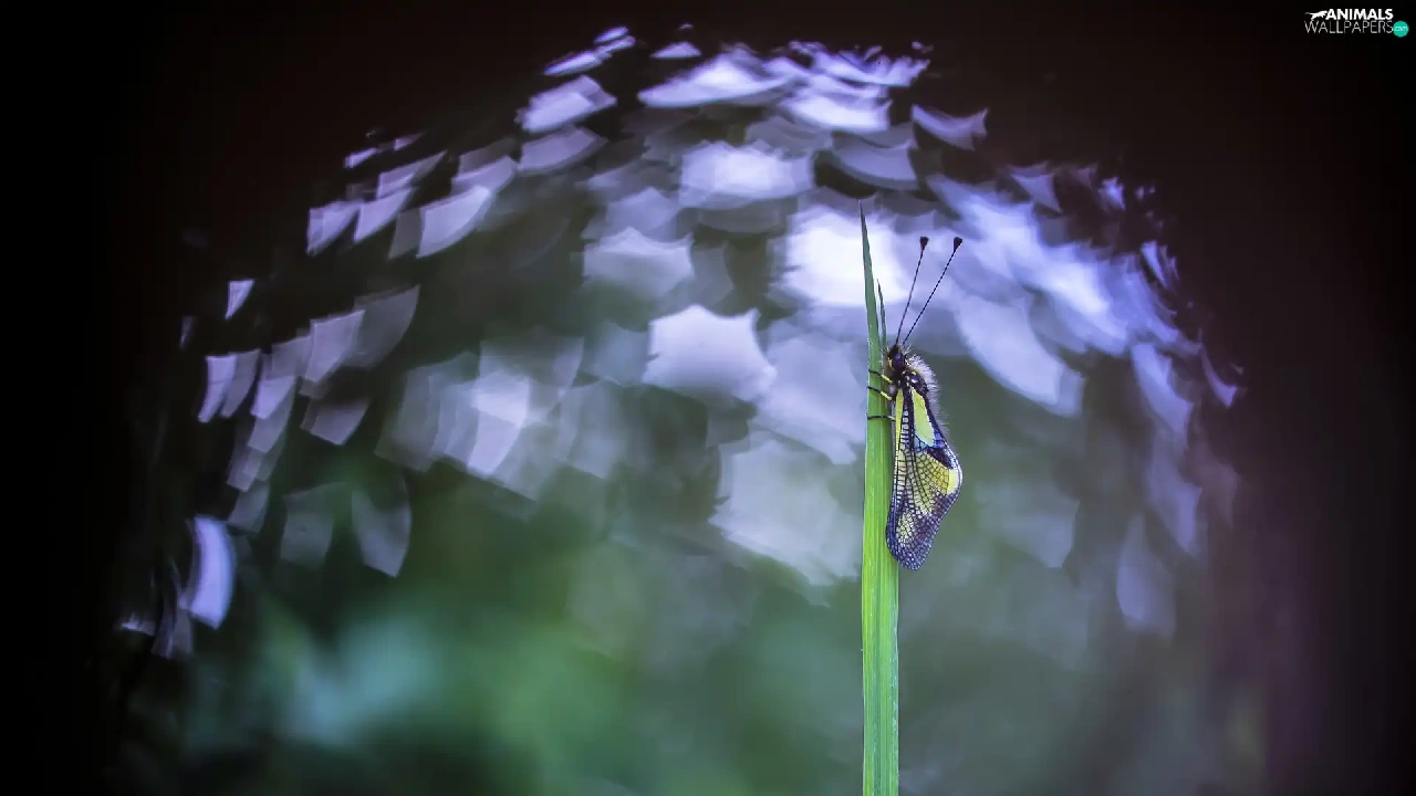 green ones, Yellow-Black, grass, Bokeh, stalk, Insect