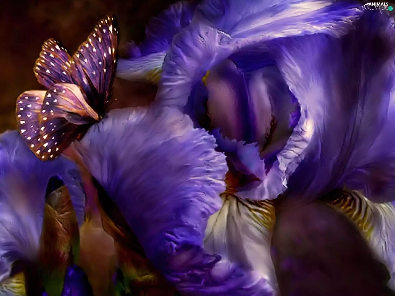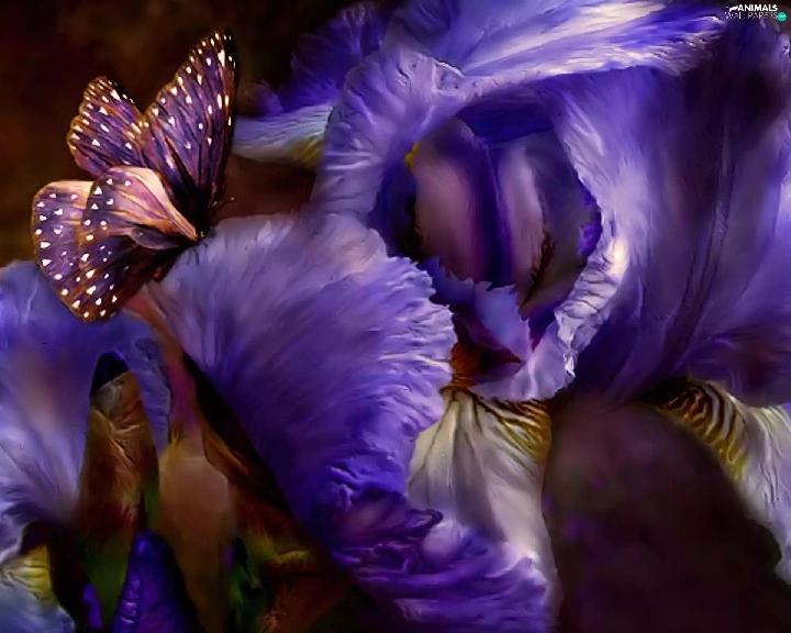 Irises, Violet, butterfly