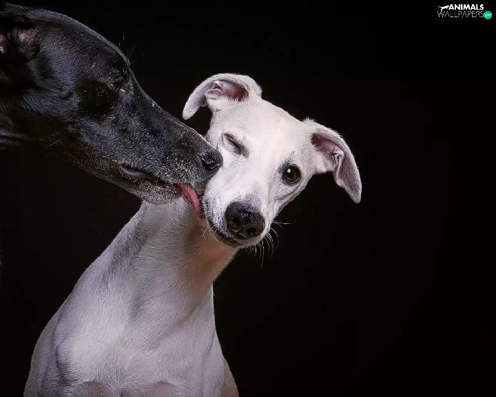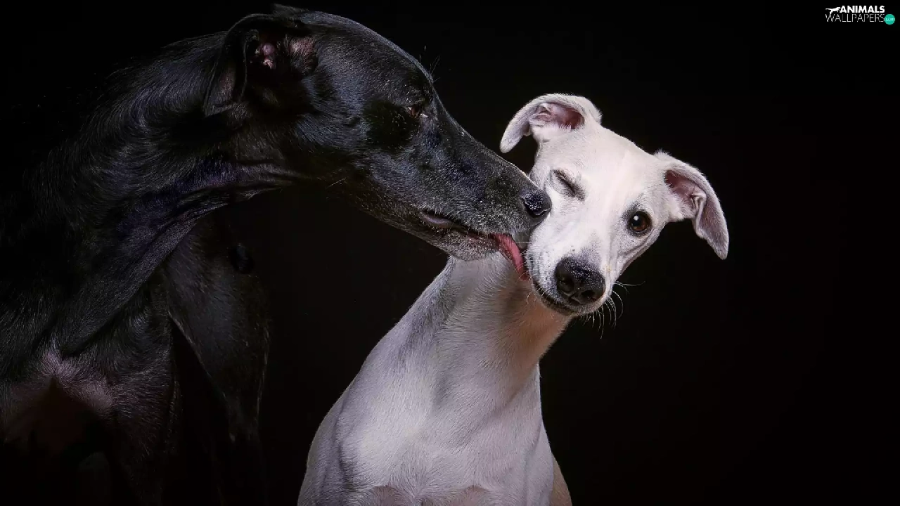 White, Black, Dogs, Italian Greyhounds, Two cars