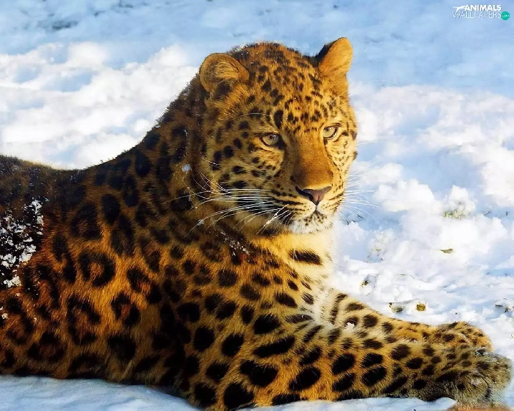 Jaguar, snow, lying