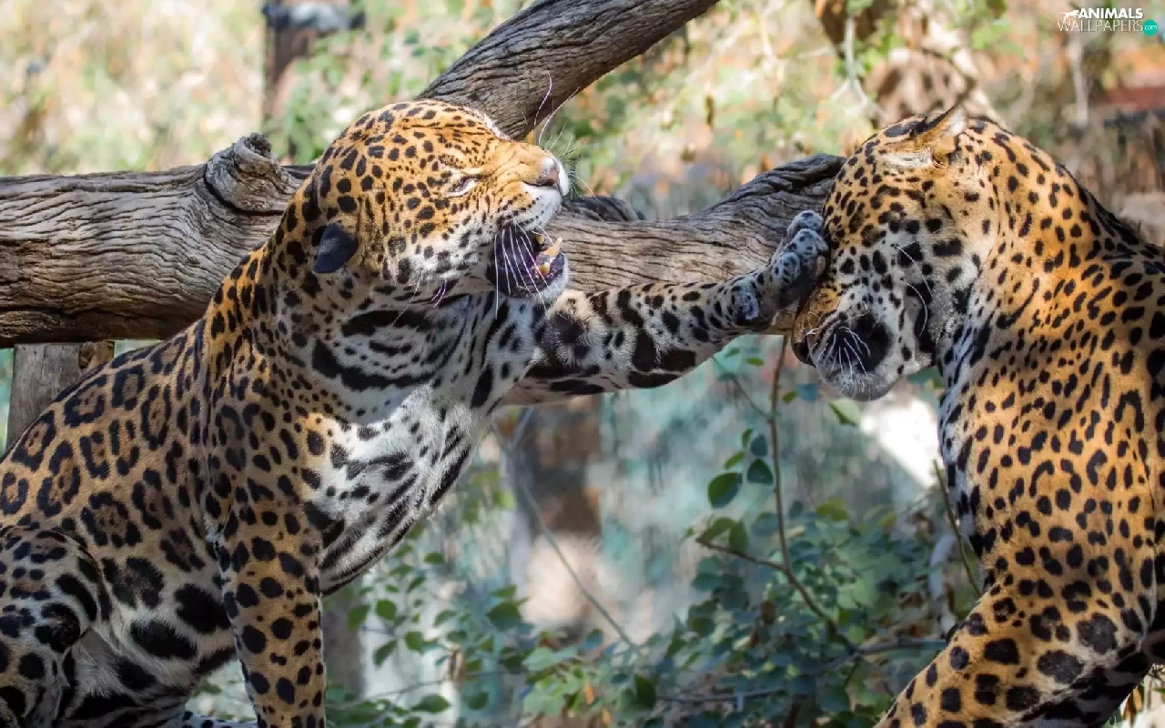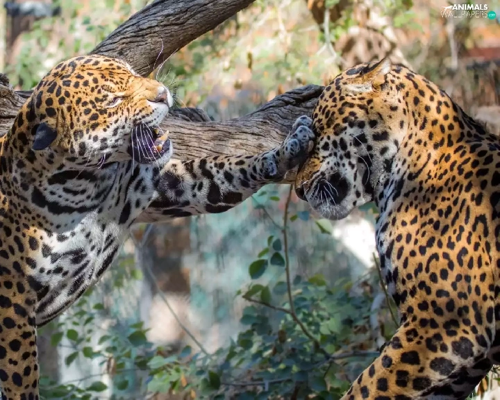 trees, Two cars, Jaguars