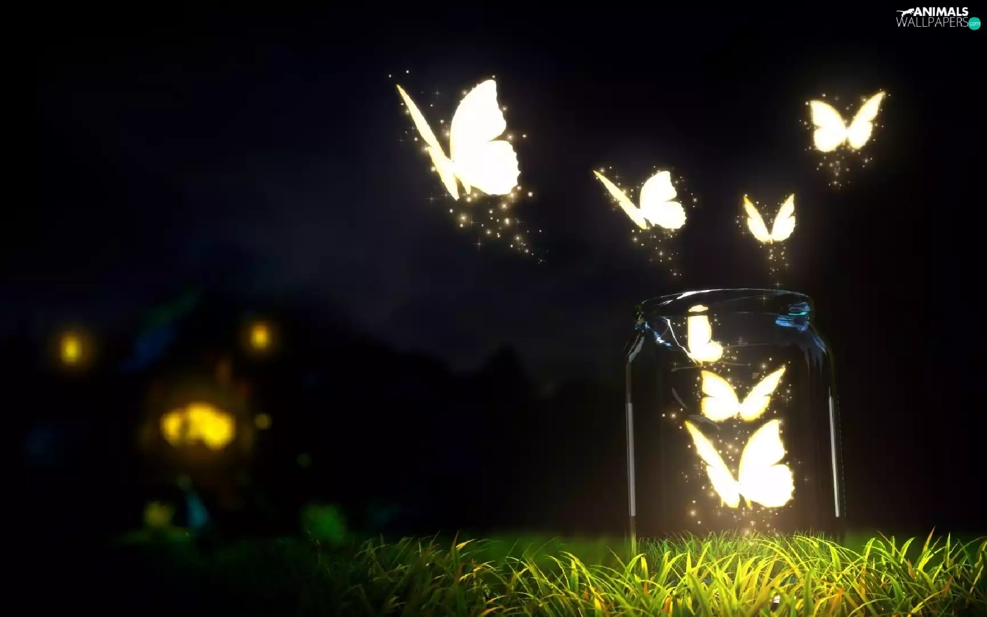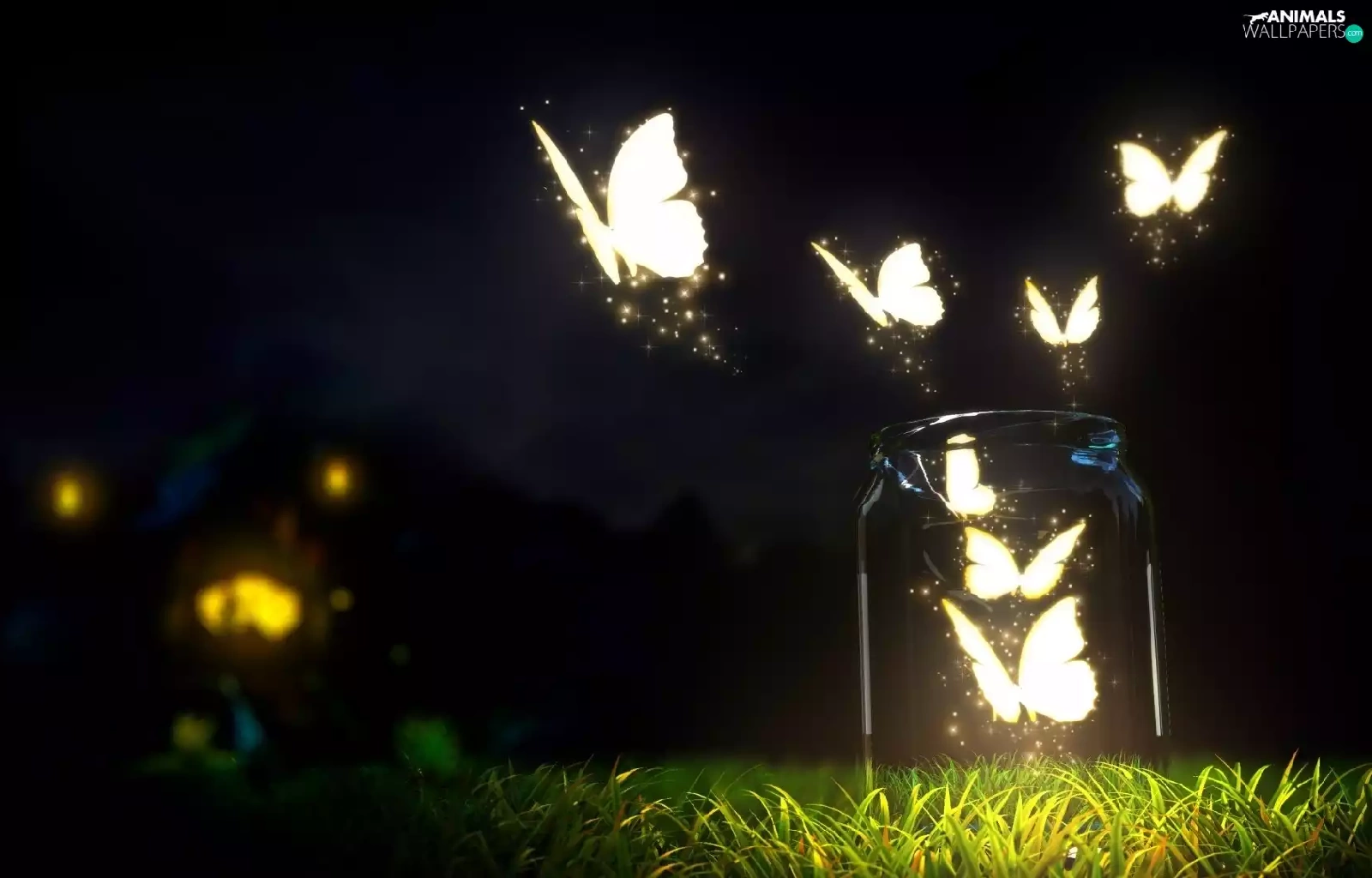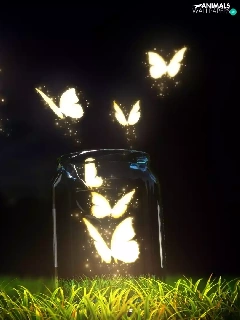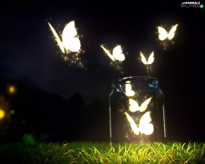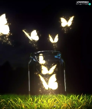 graphics, butterflies, grass, jar