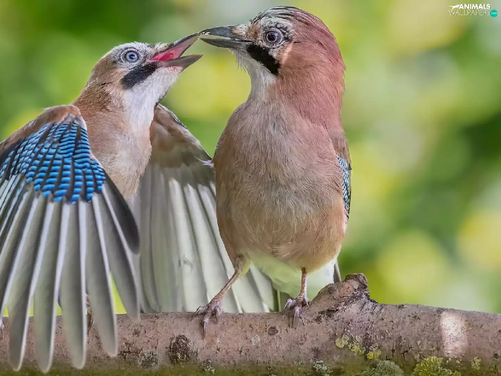 Two cars, Blue jay, branch, birds