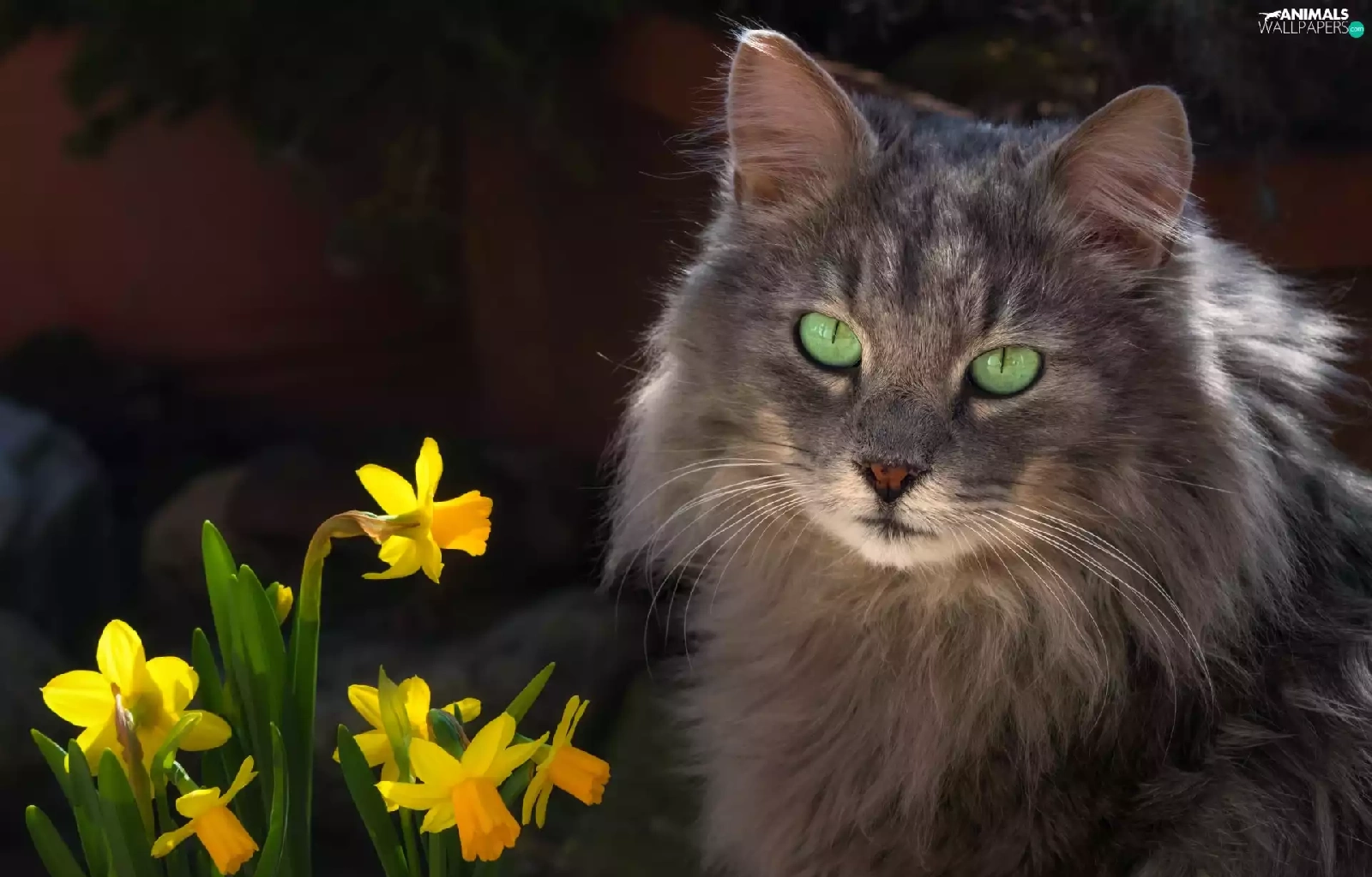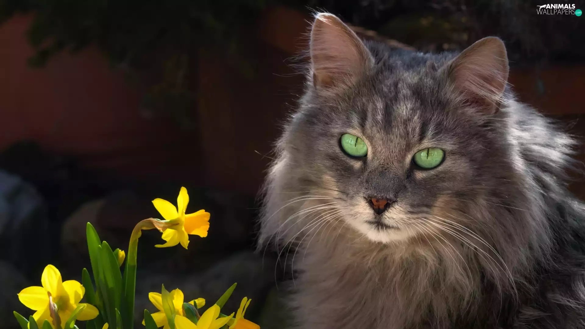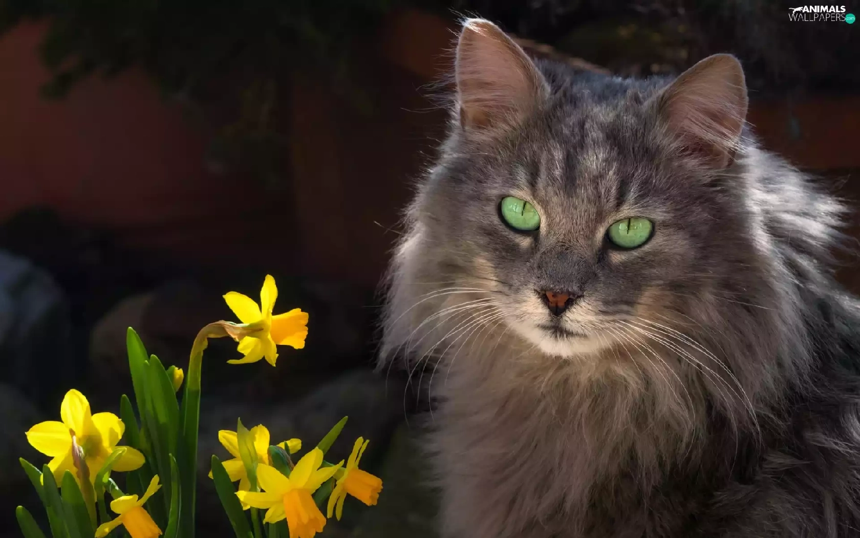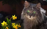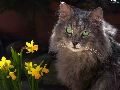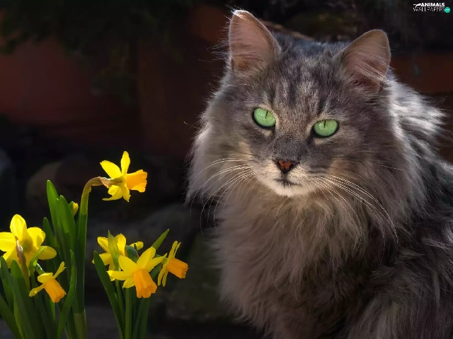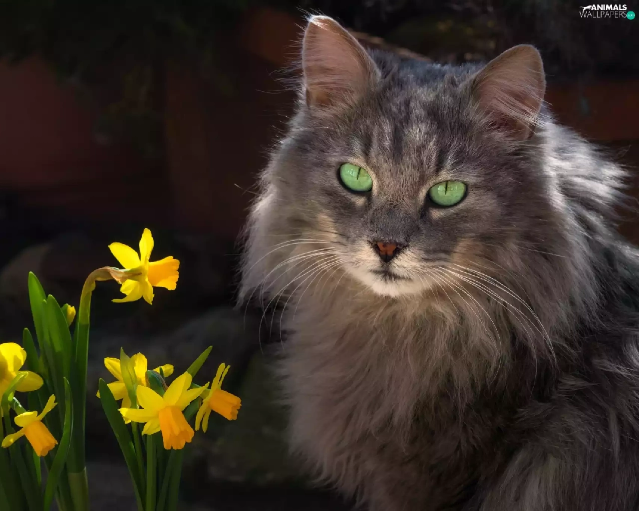 Jonquil, cat, Flowers