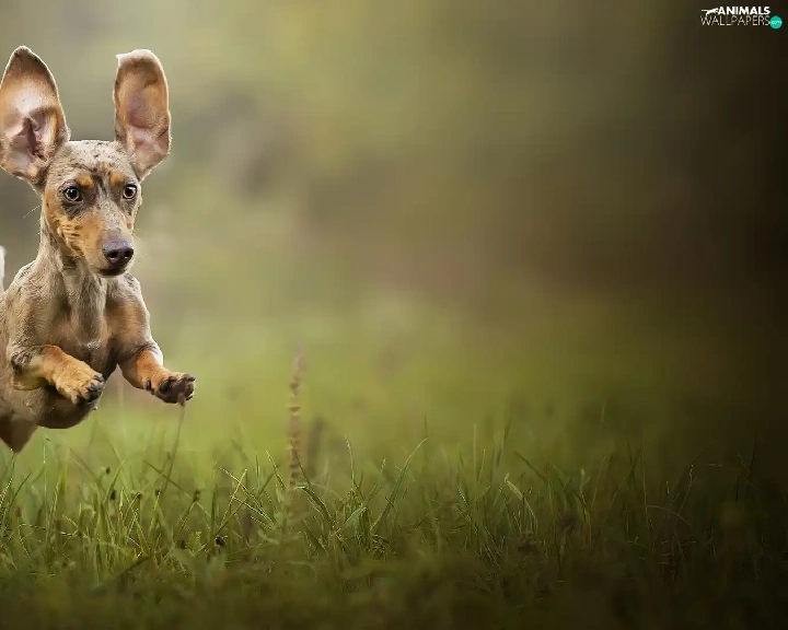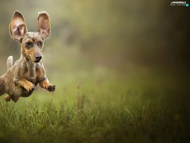 grass, Dachshund Shorthair, jump
