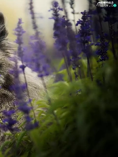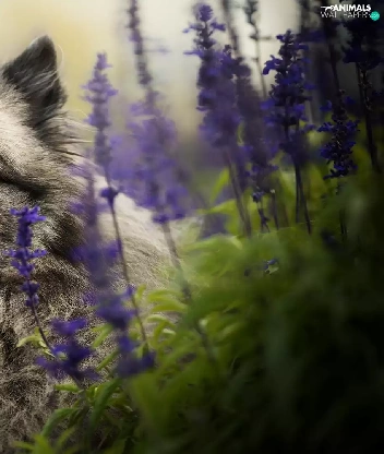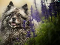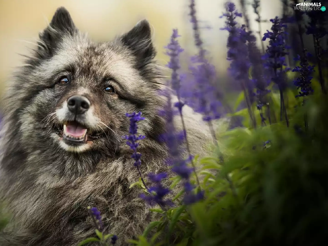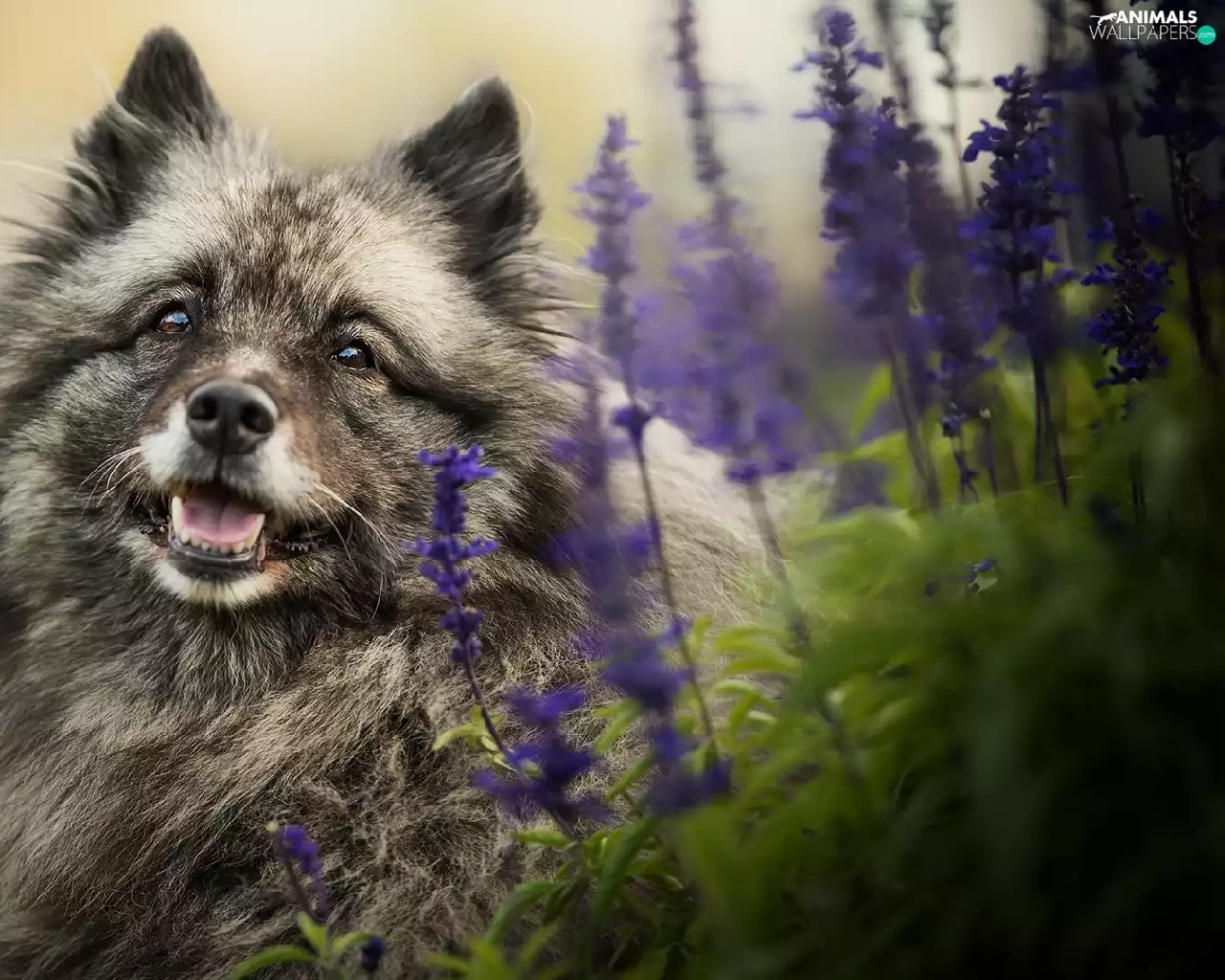 dog, muzzle, Flowers, Keeshond