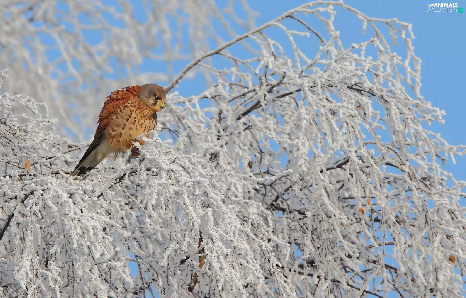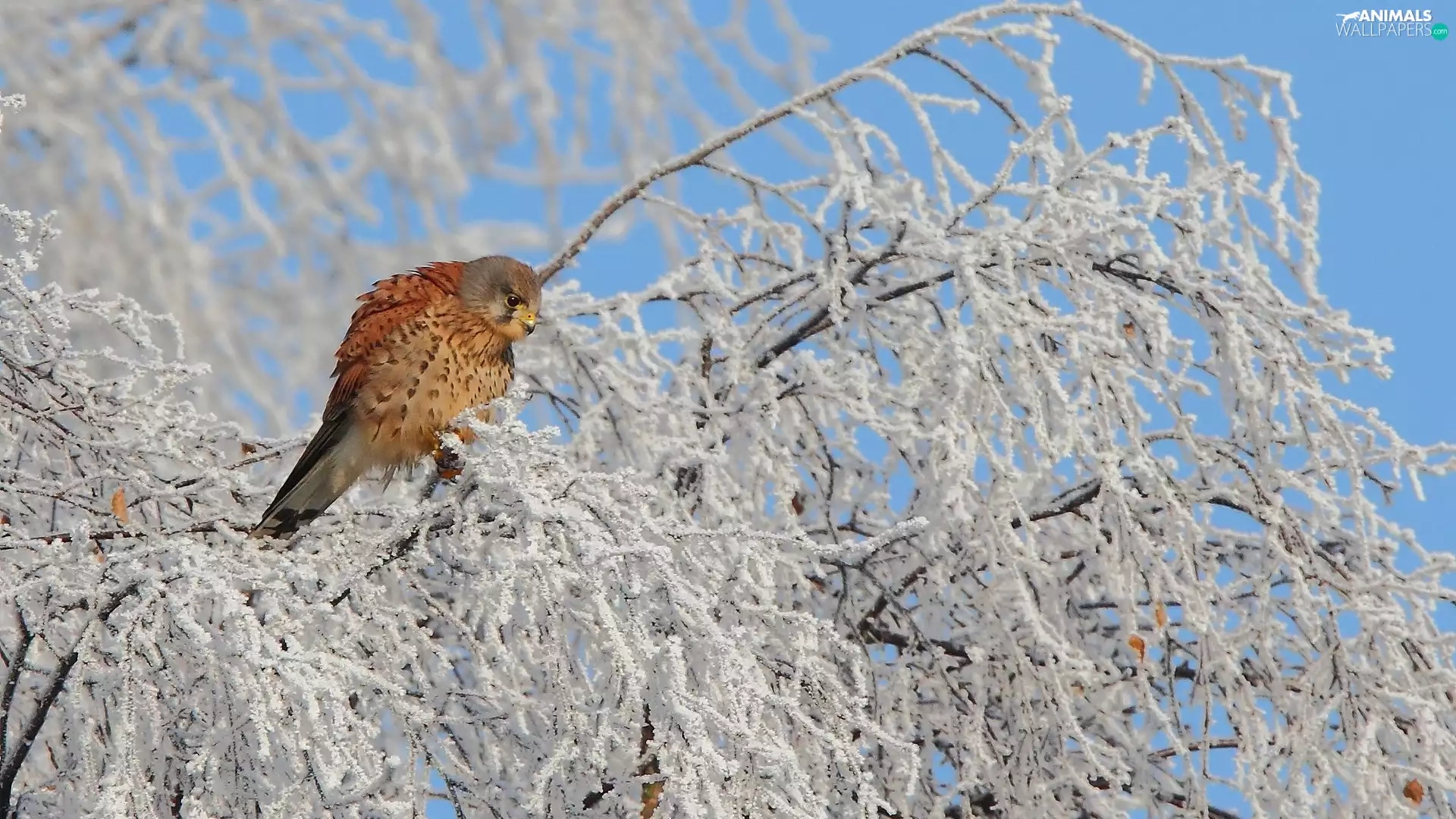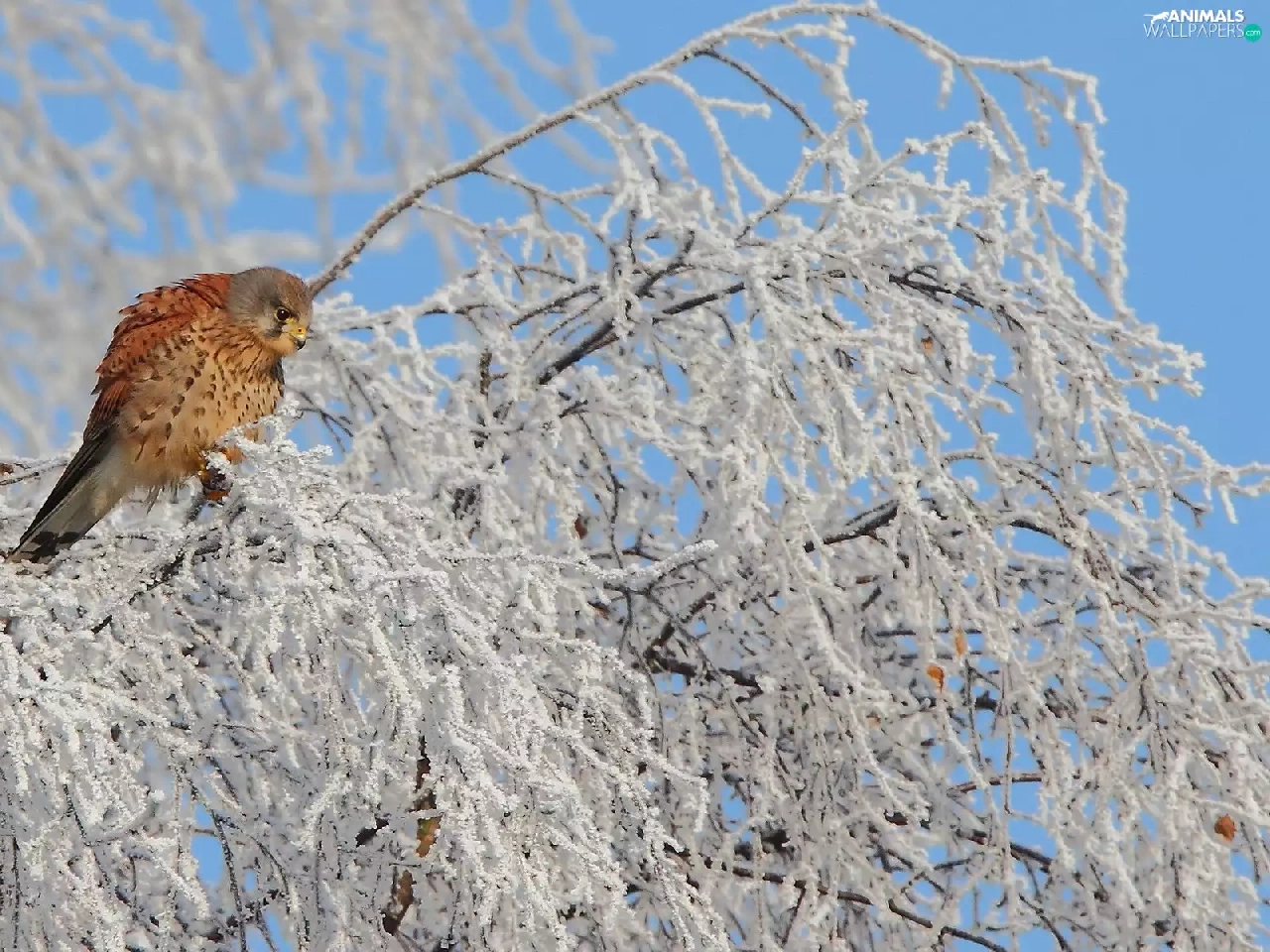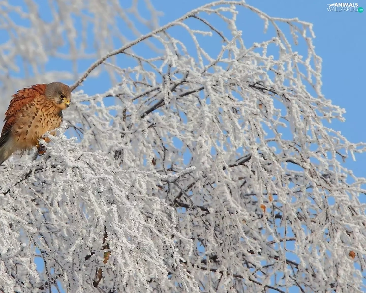 Bird, winter, trees, kestrel