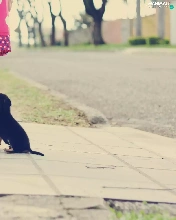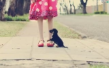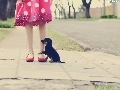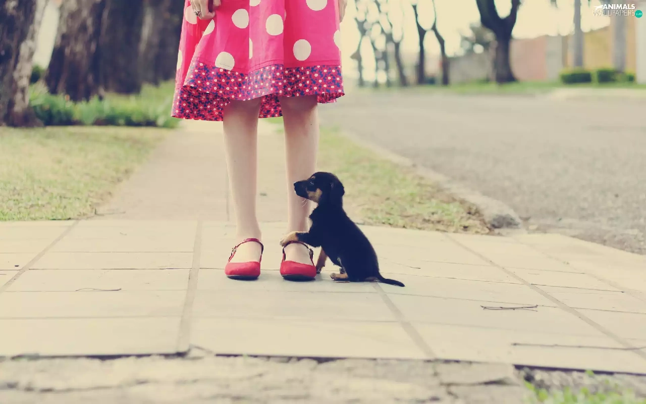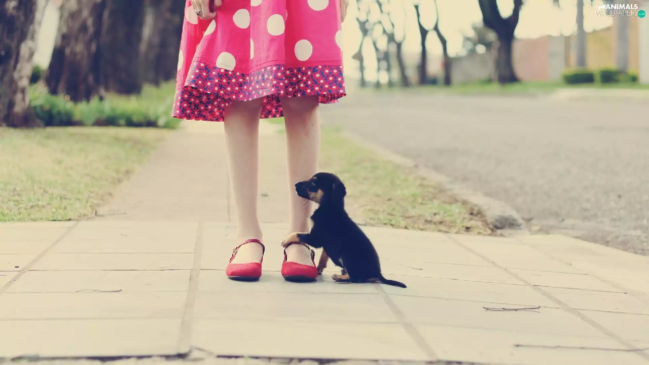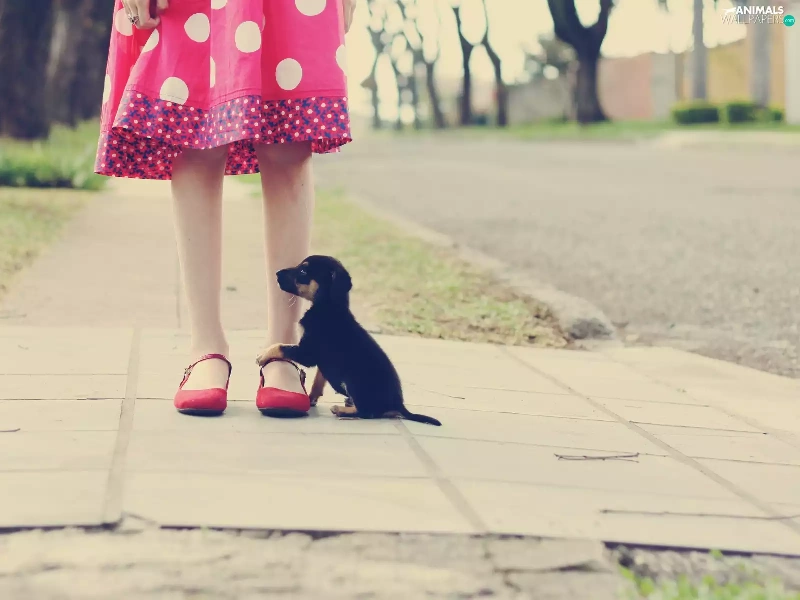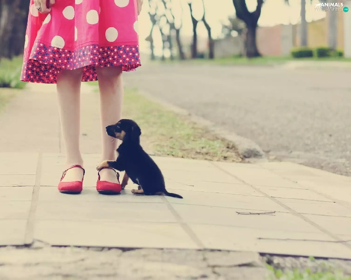 Street, girl, puppie, Kid