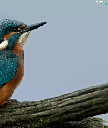 kingfisher, blue, trees, viewes, Lod on the beach, Brown