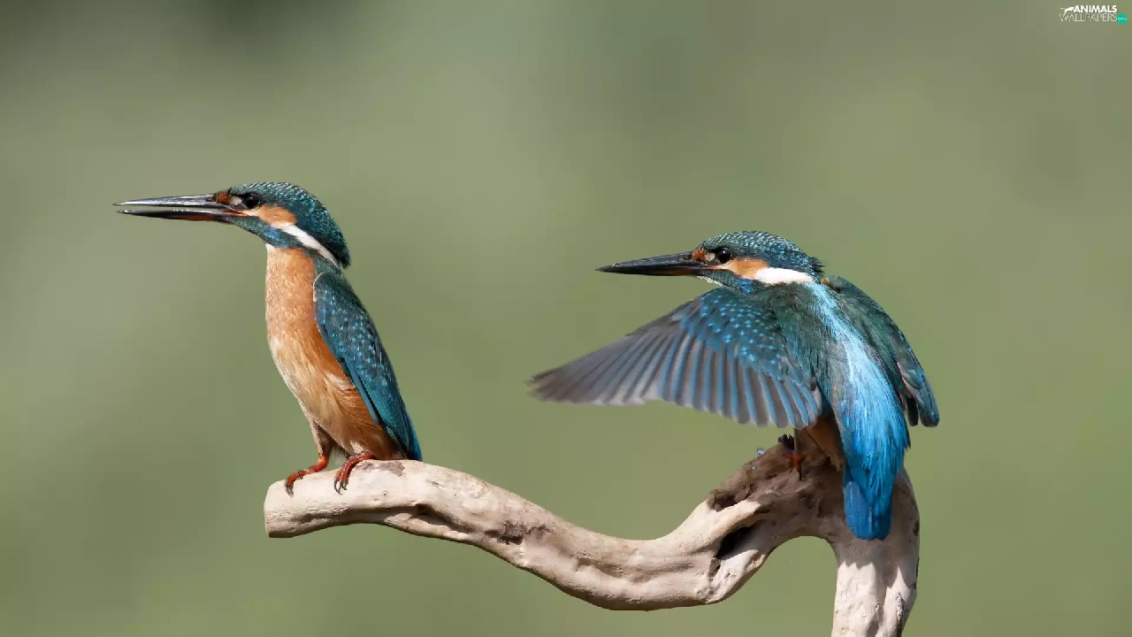 branch, background, birds, kingfishers, Two cars