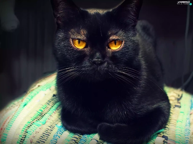 Black, Yellow, Eyes, kitten