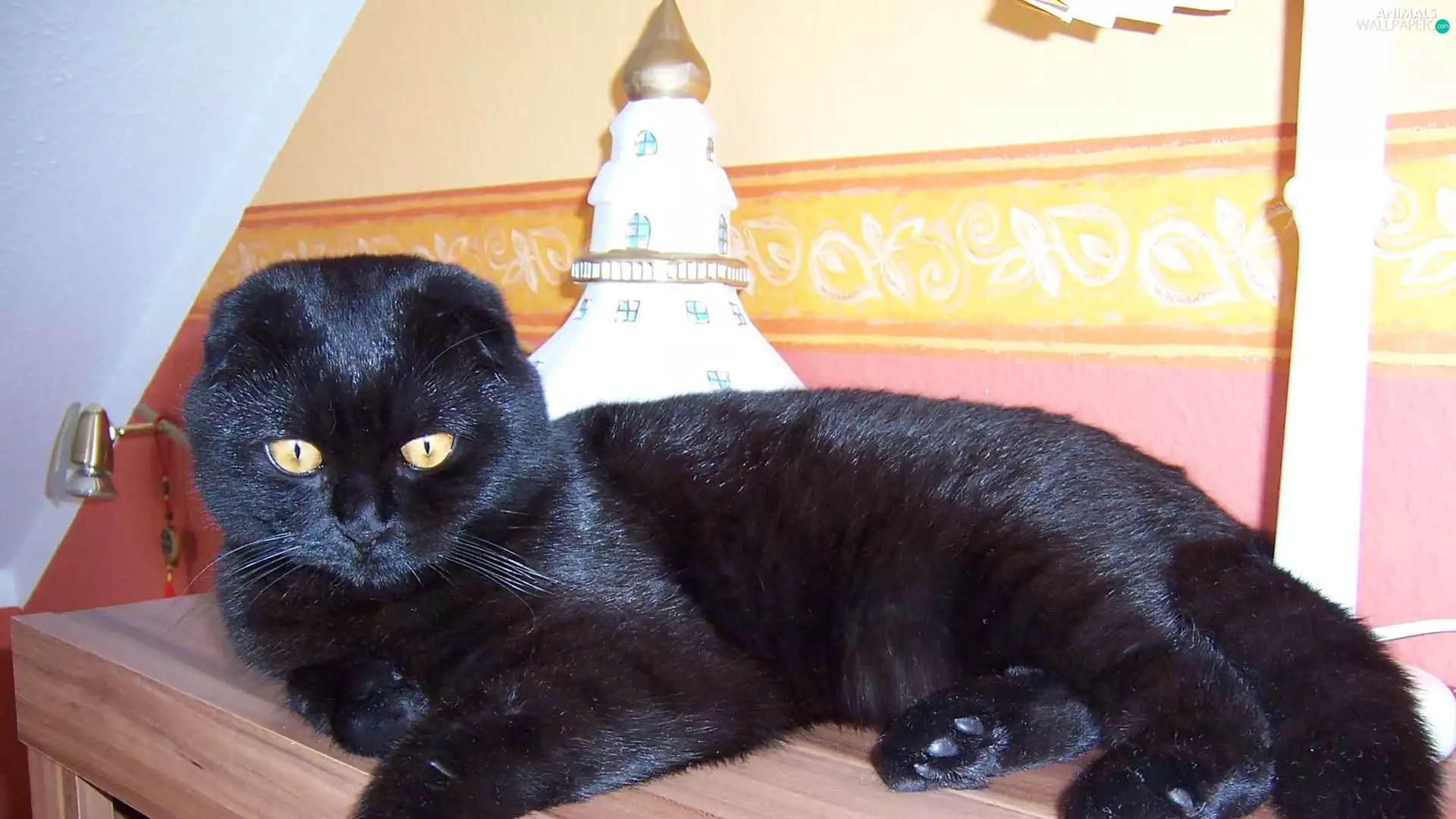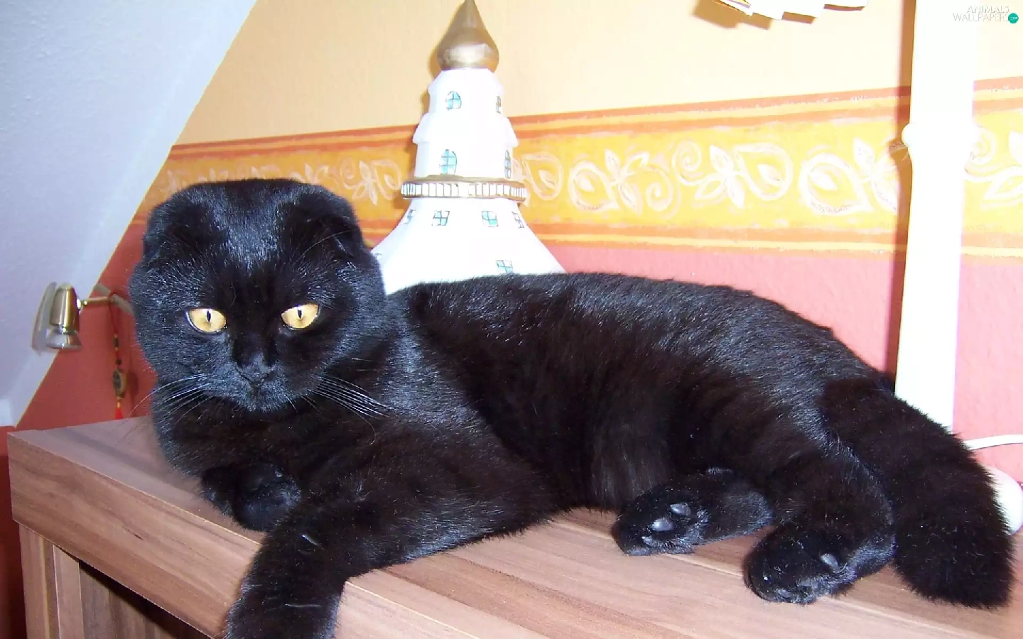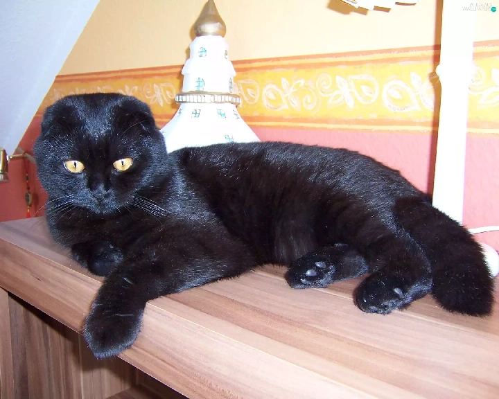 Black, table, Lamp, kitten