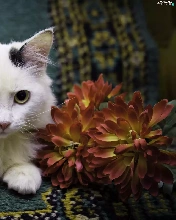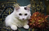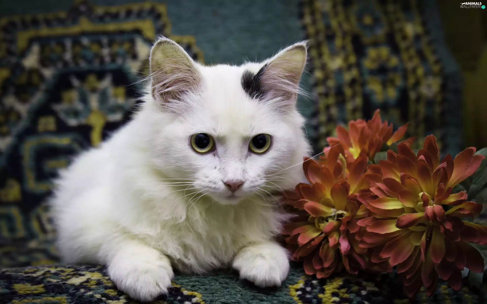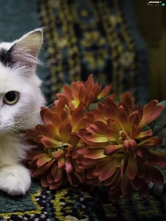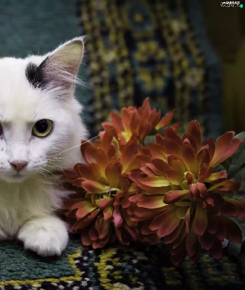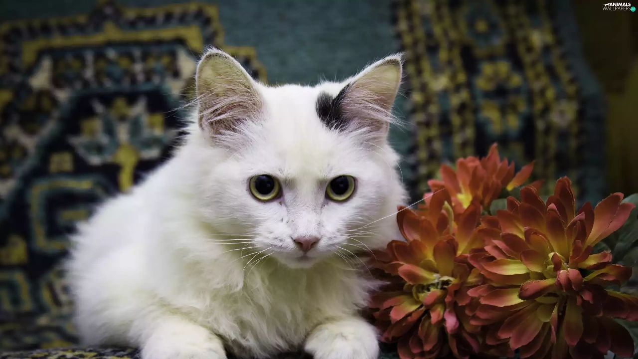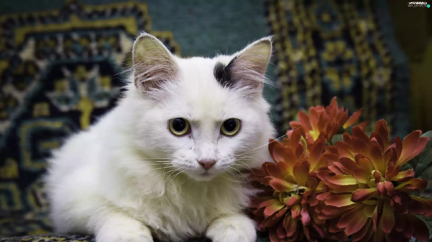 Colourfull Flowers, White, kitten