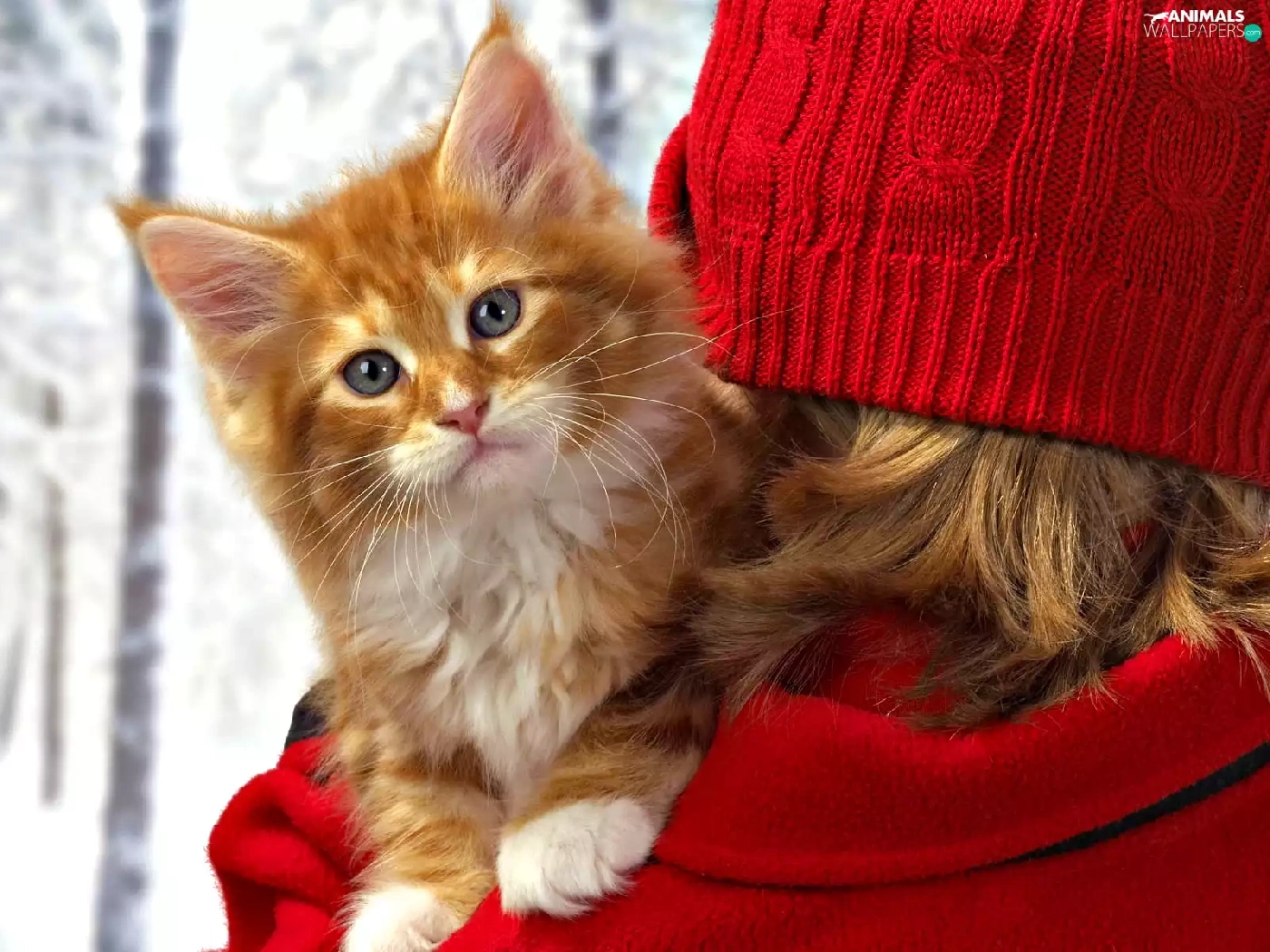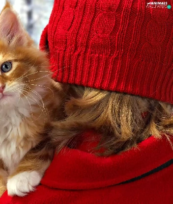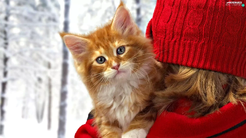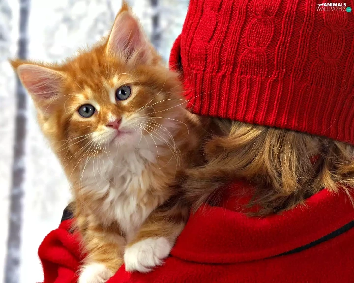 red hot, Hat, kitten, lady, ginger