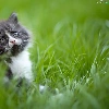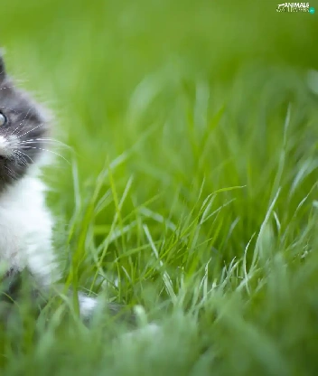 small, kitten, grass, Grey-White