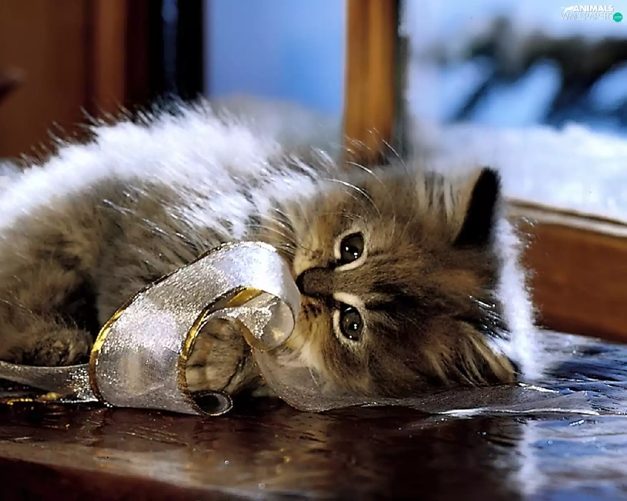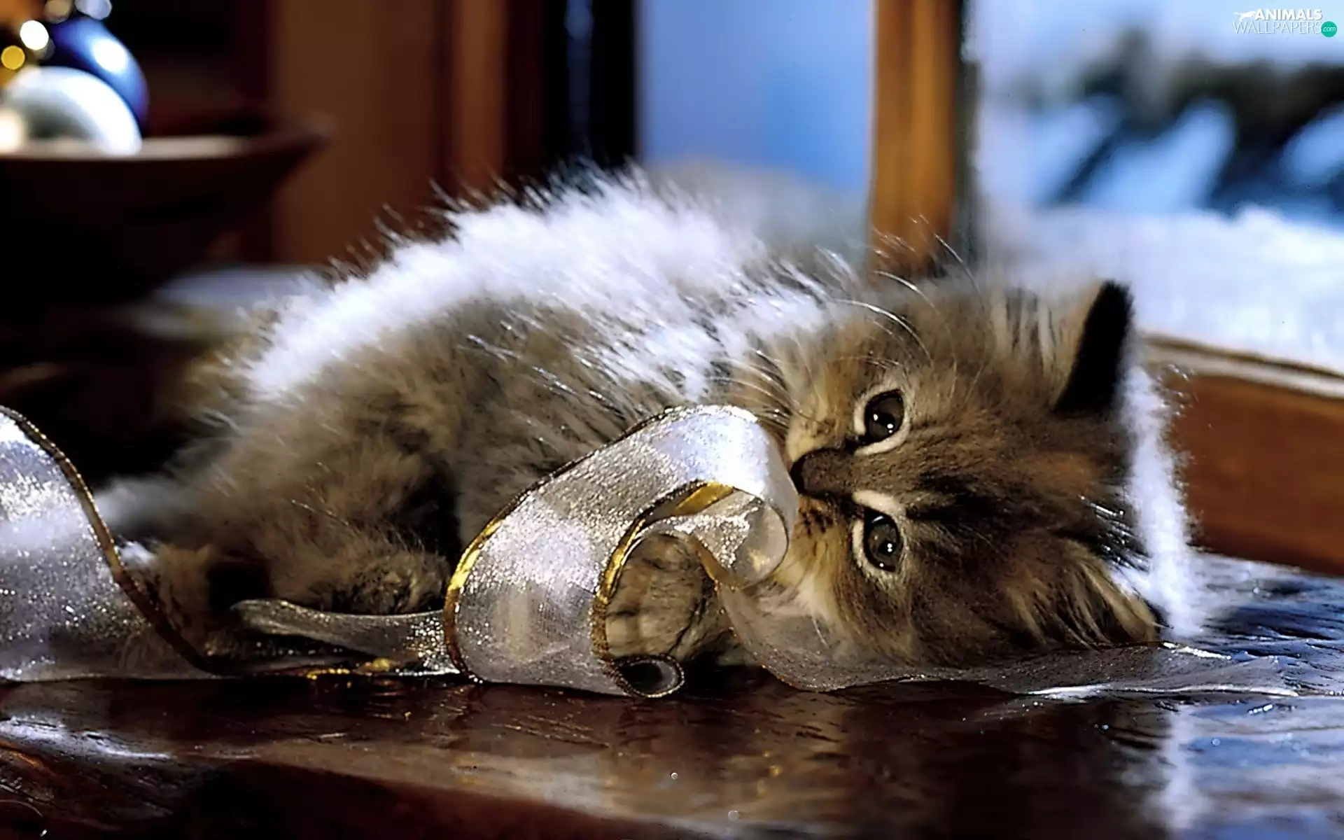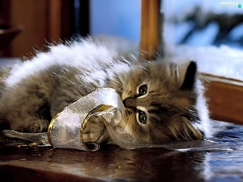 kitten, ribbon