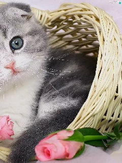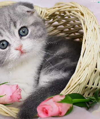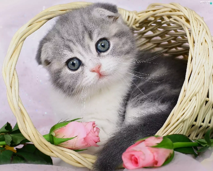 kitten, basket, roses, ##