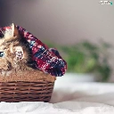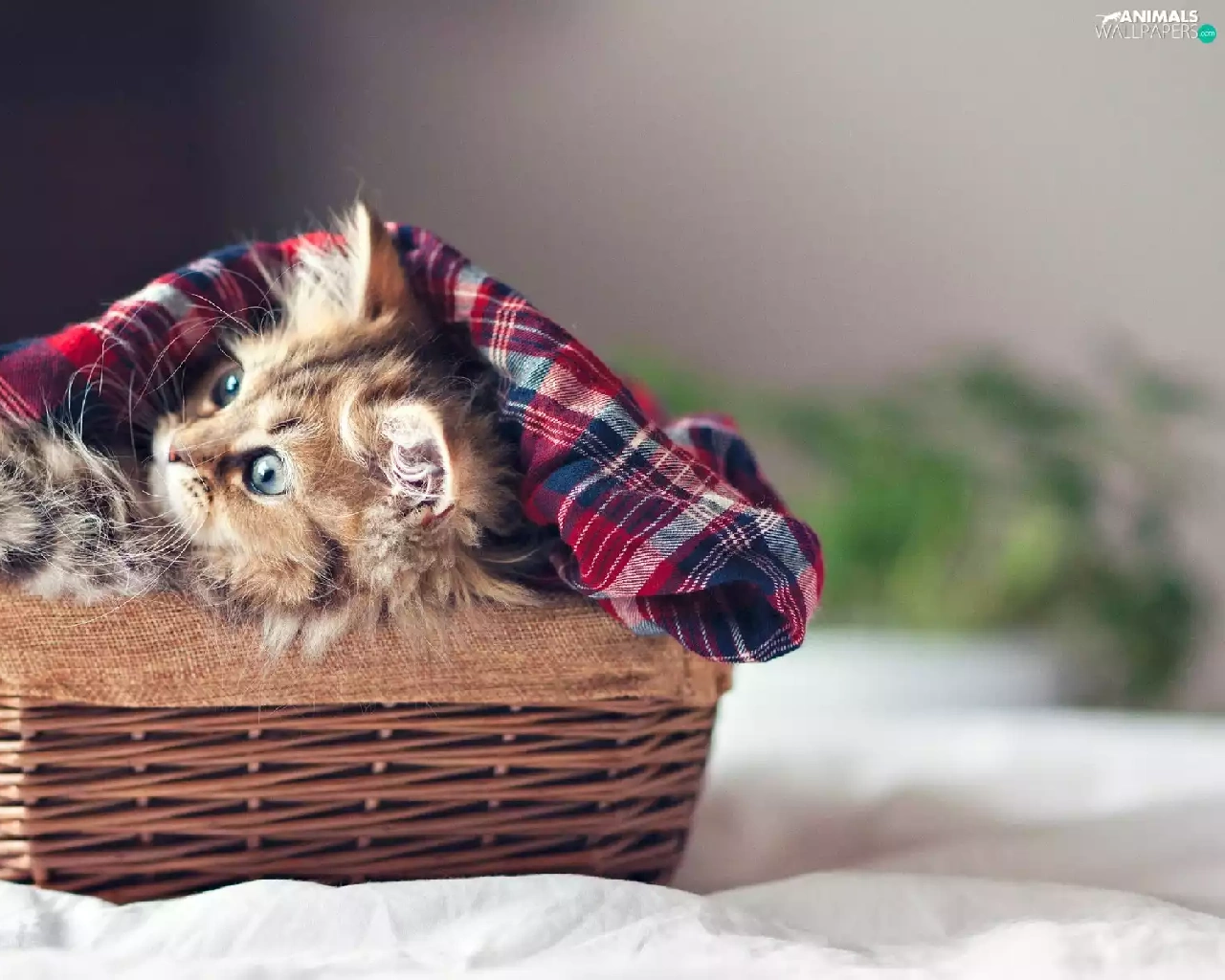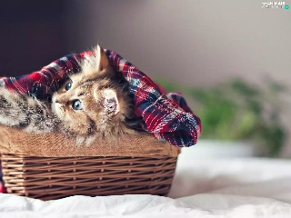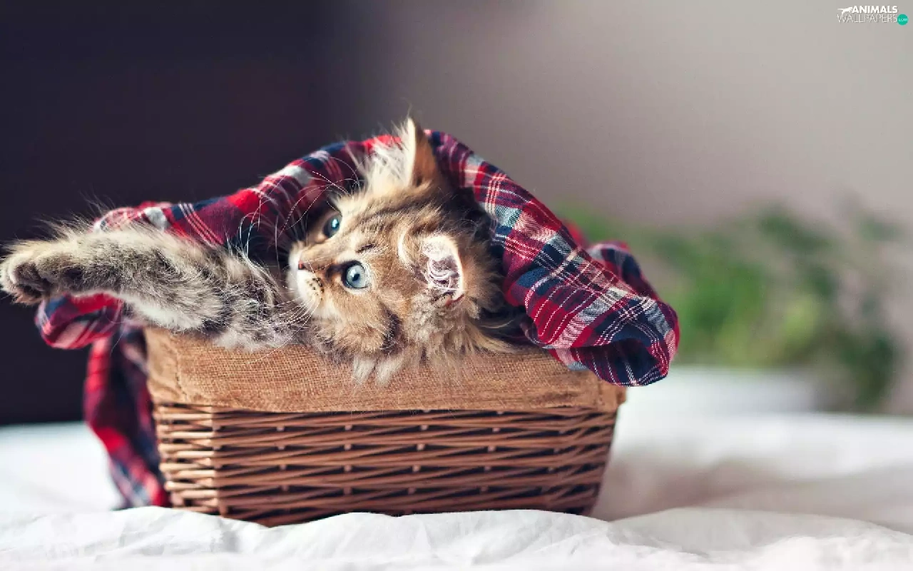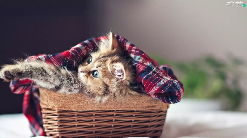 small, wicker, basket, kitten