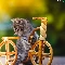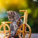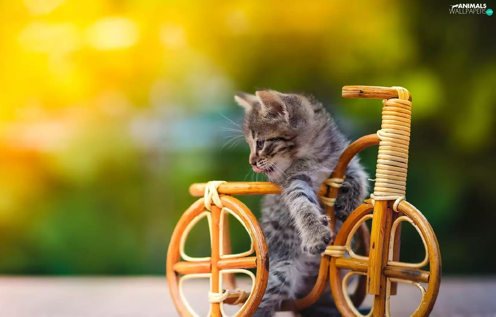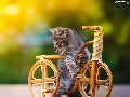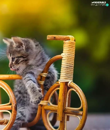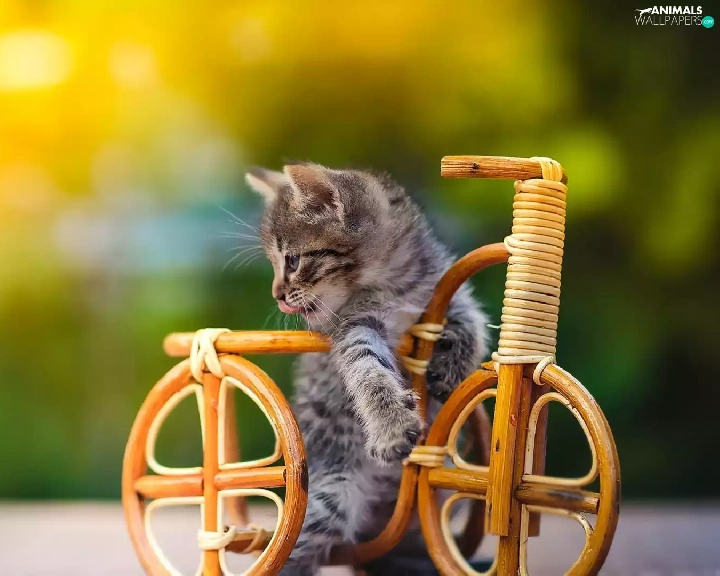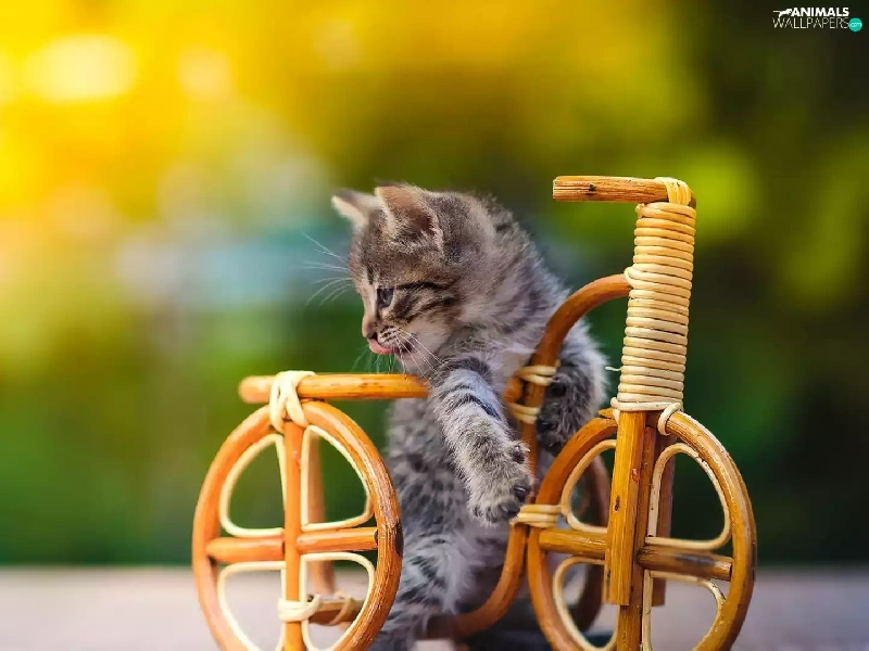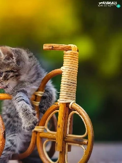 small, wooden, Bicycle, kitten