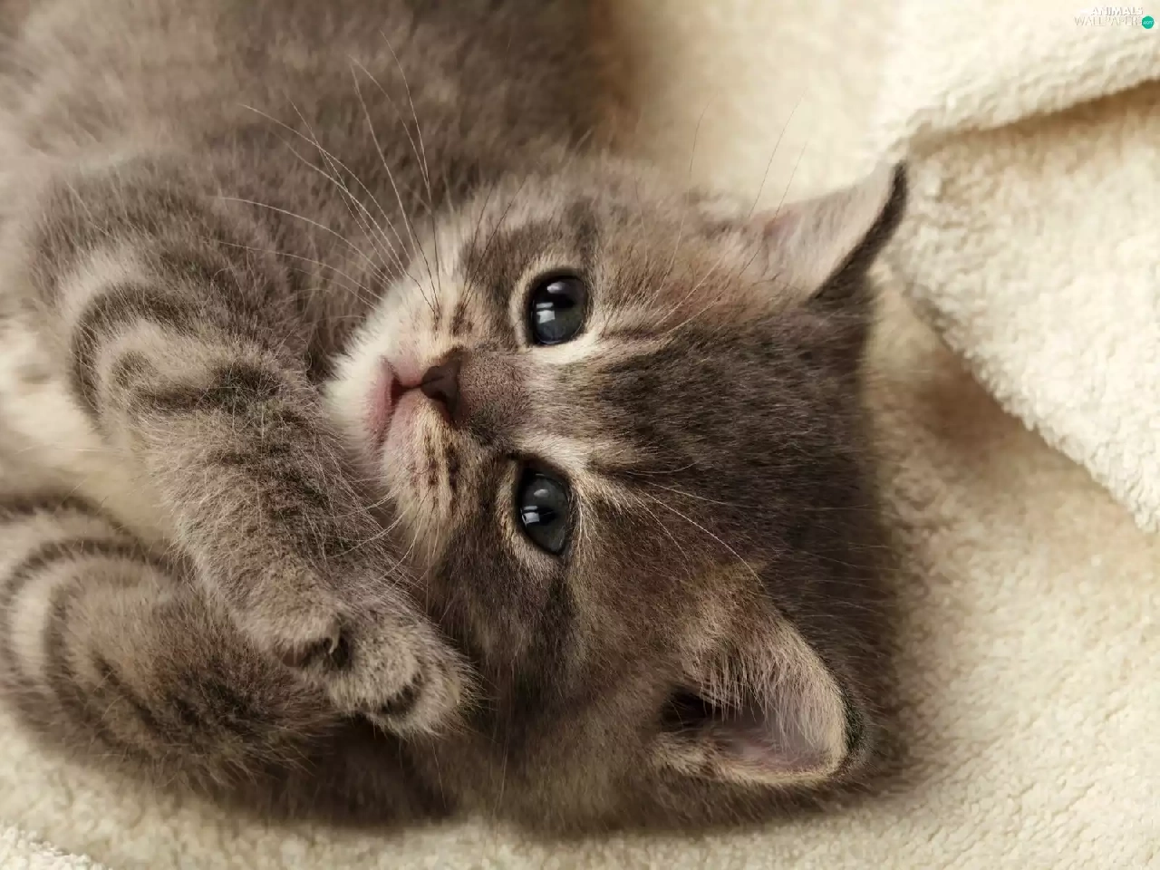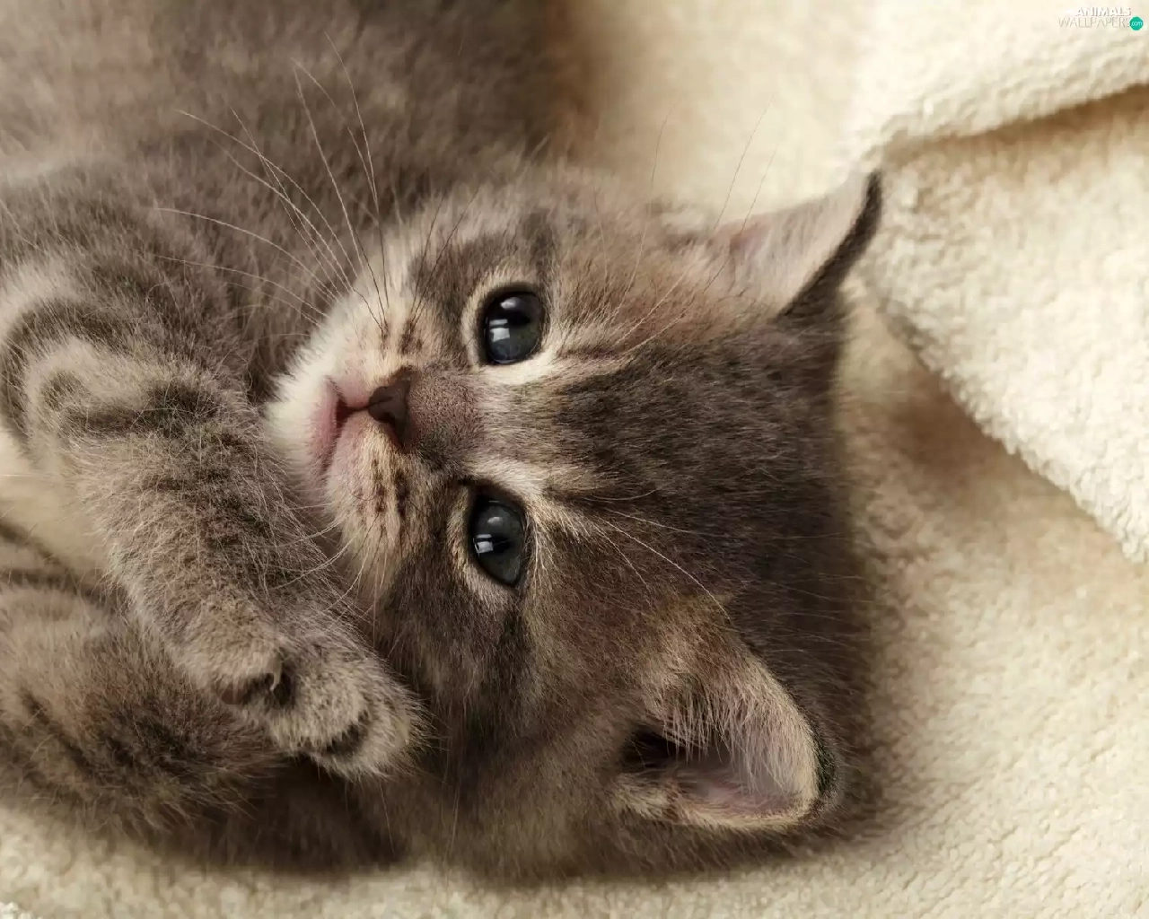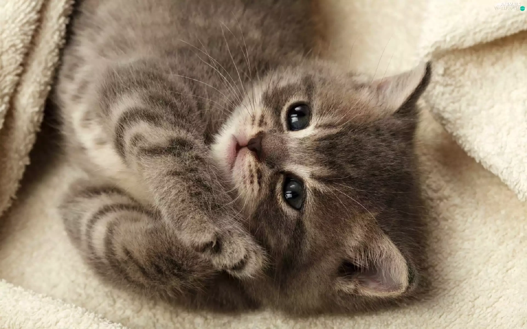 small, feet, Blanket, kitten