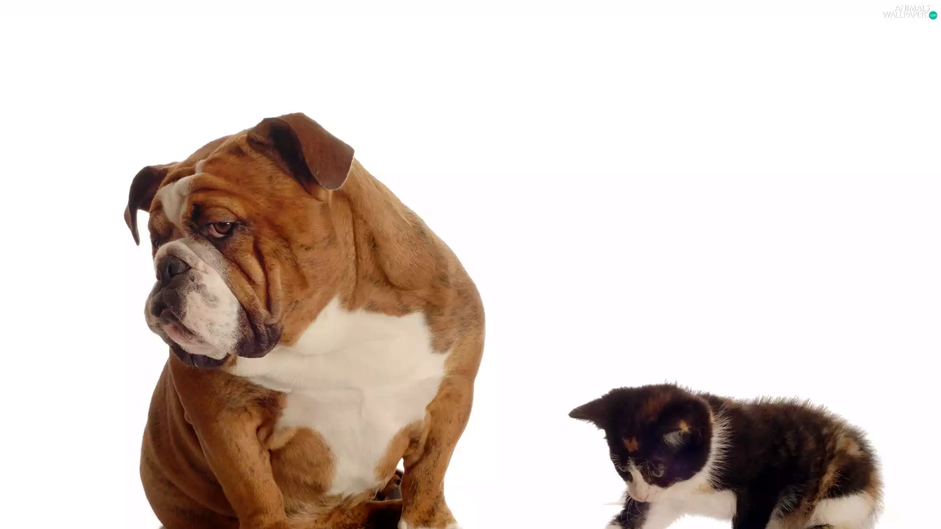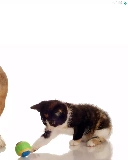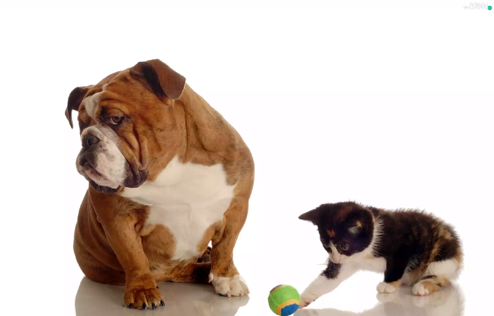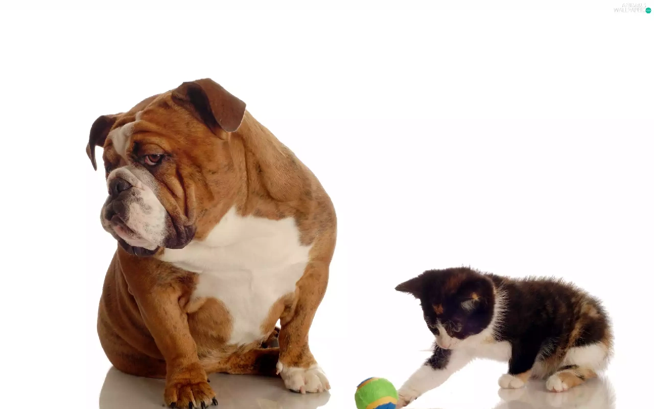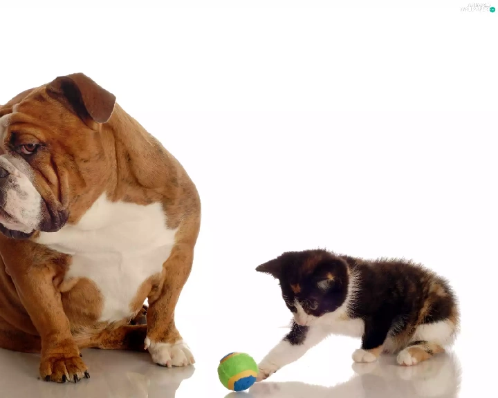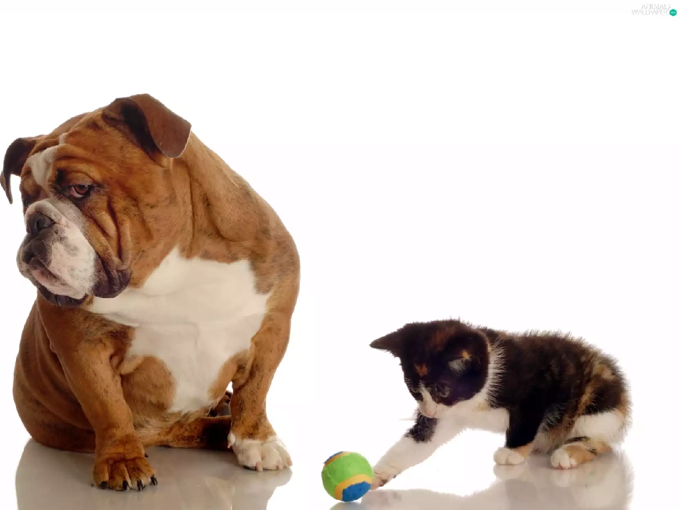the ball, Buldog, kitten, dog, small