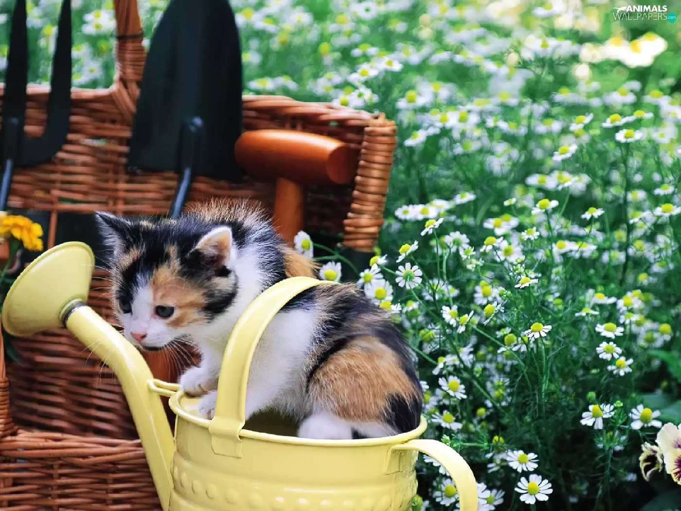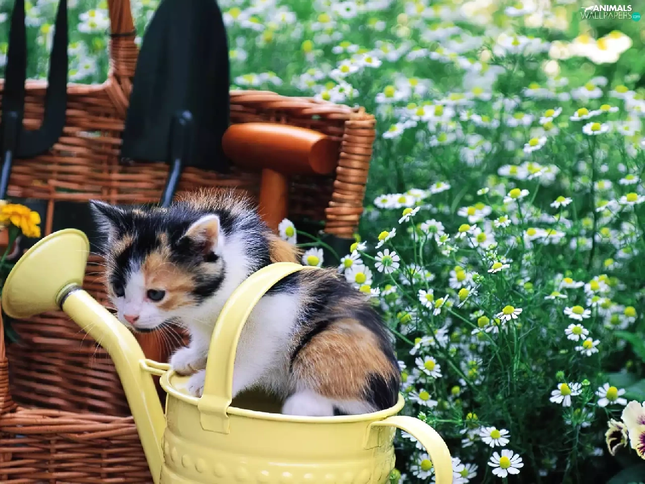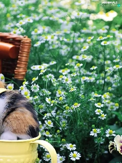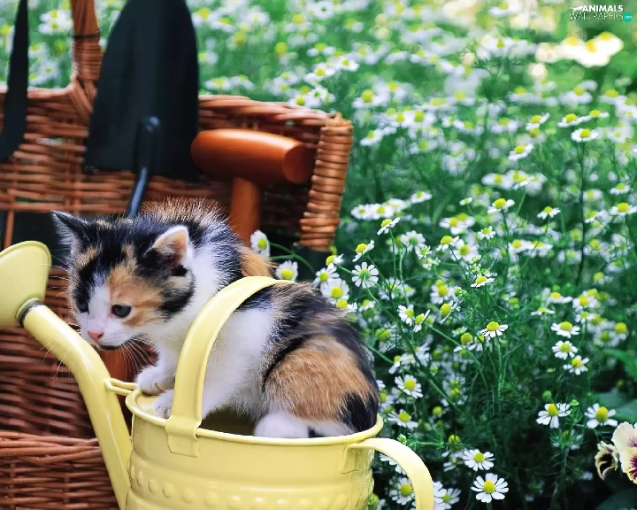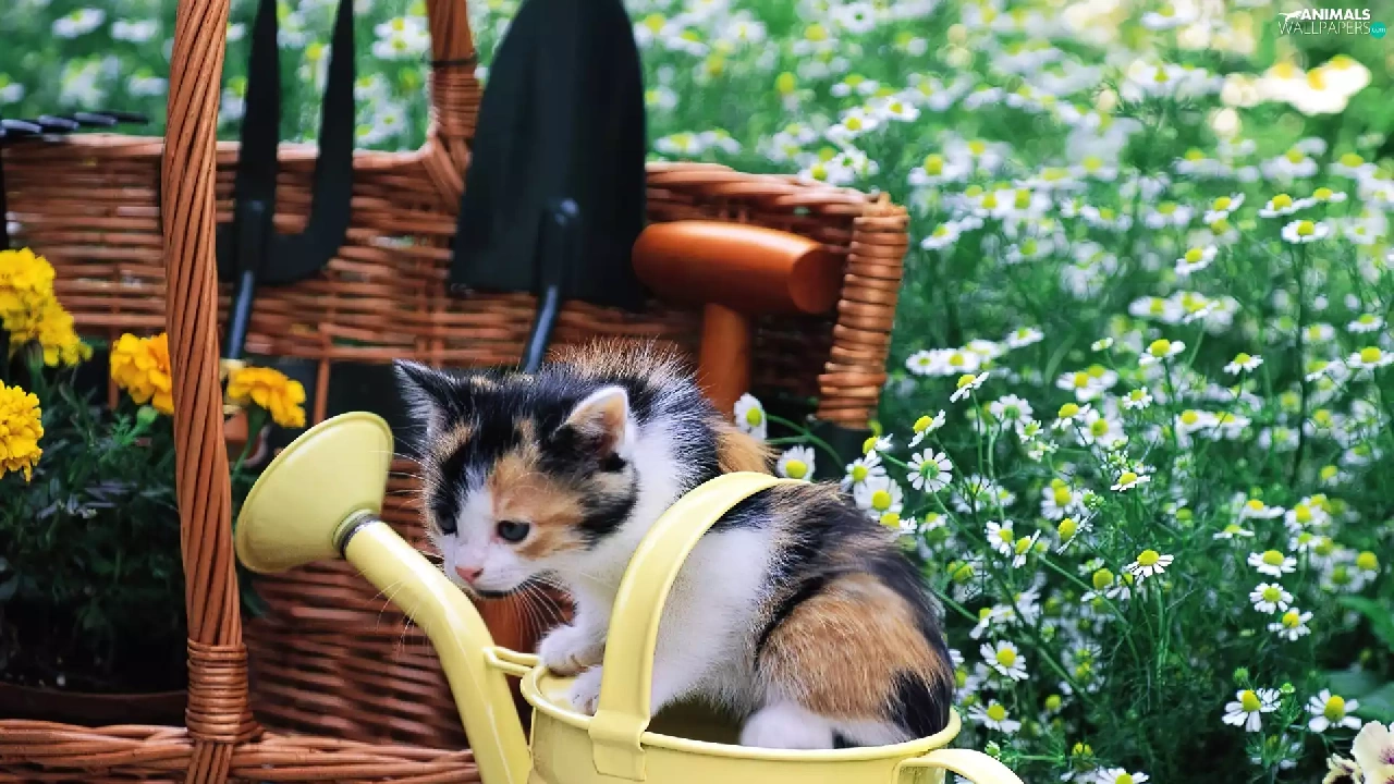 small, Garden, Flowers, kitten