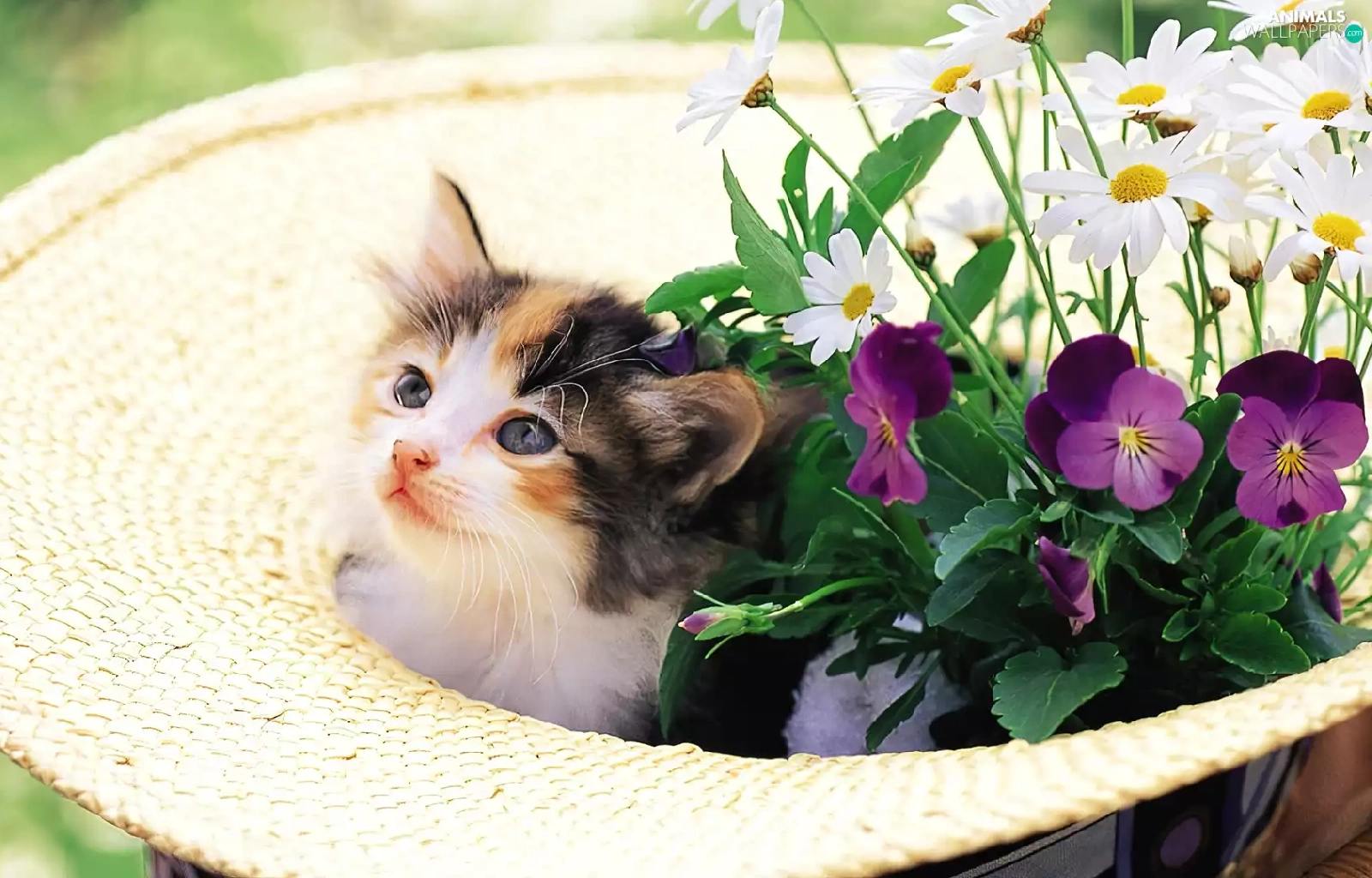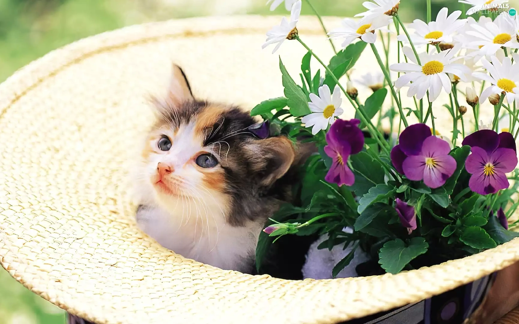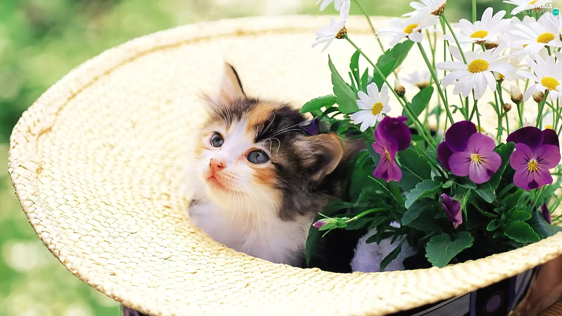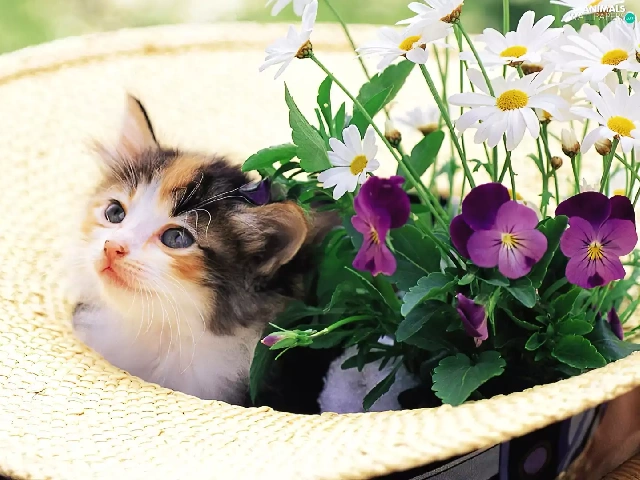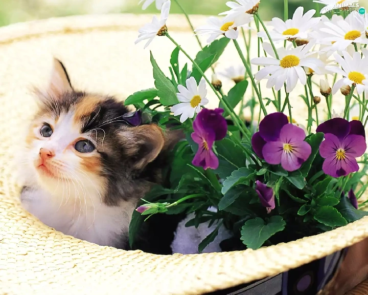 small, Hat, Flowers, kitten