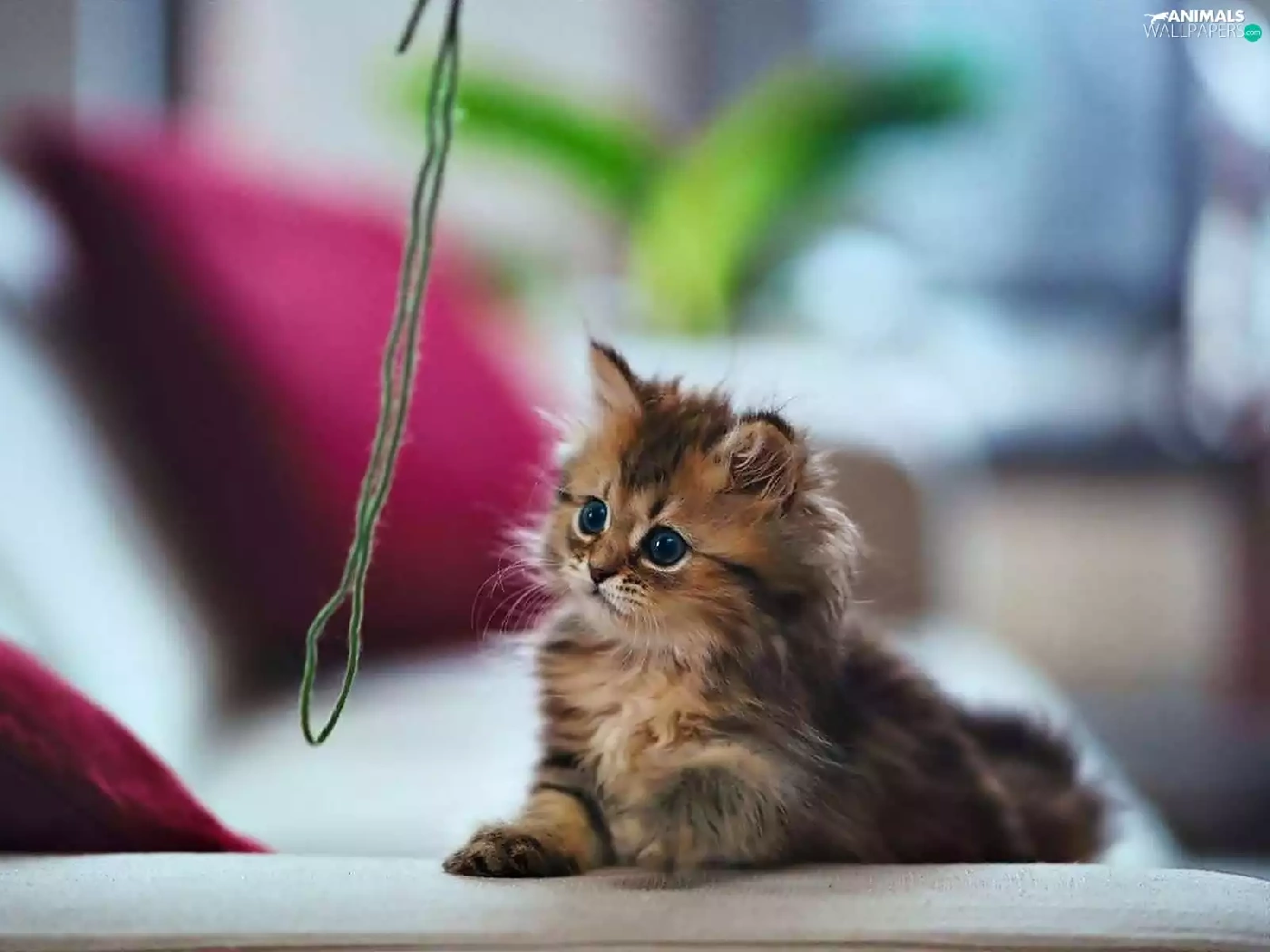 small, thread, play, kitten