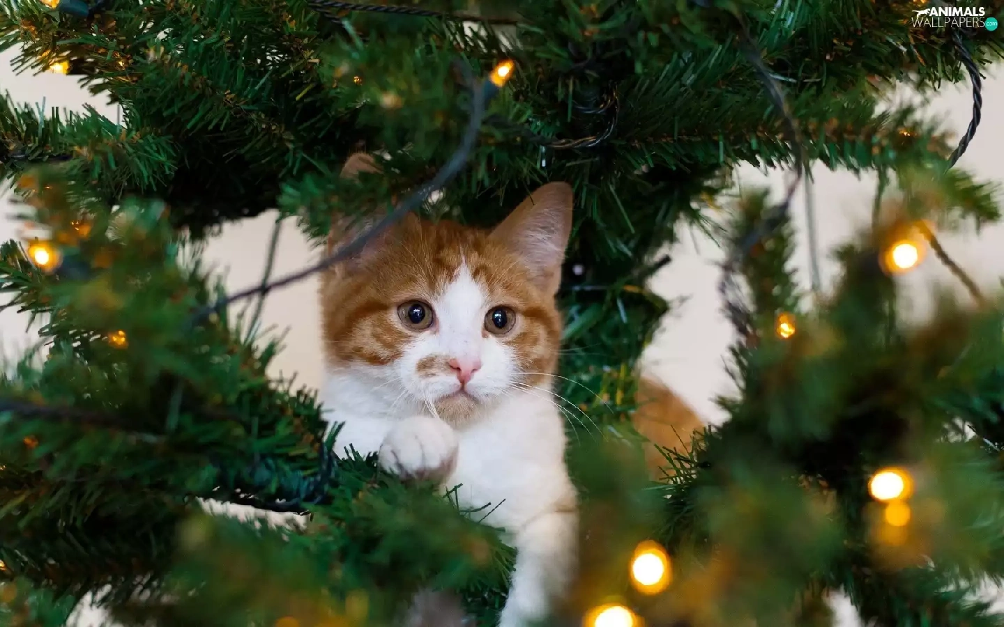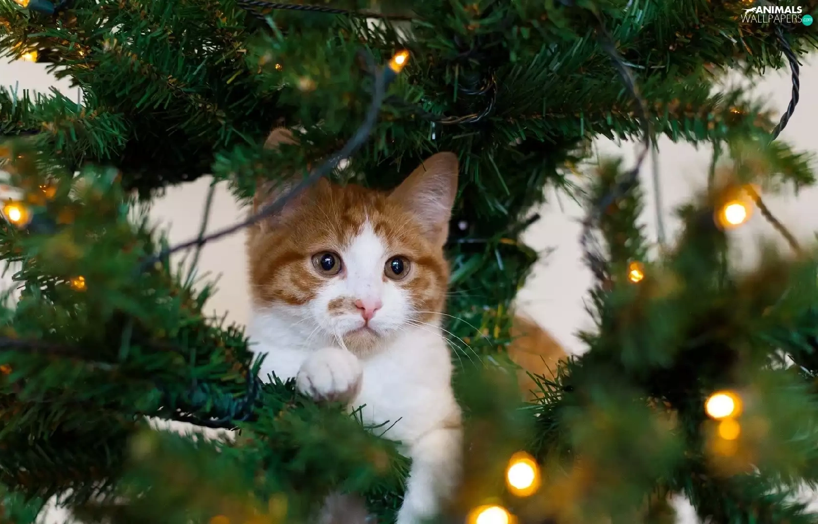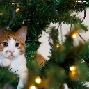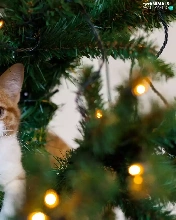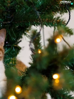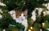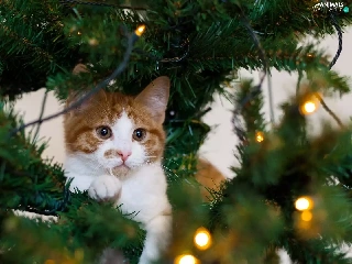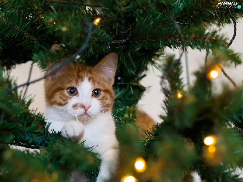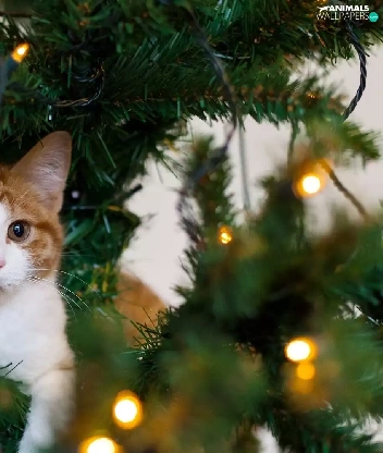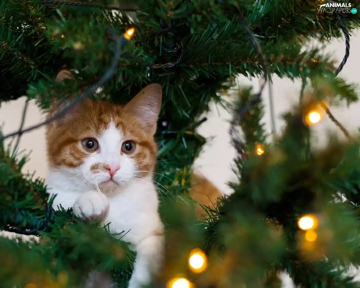 kitten, christmas tree