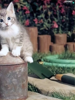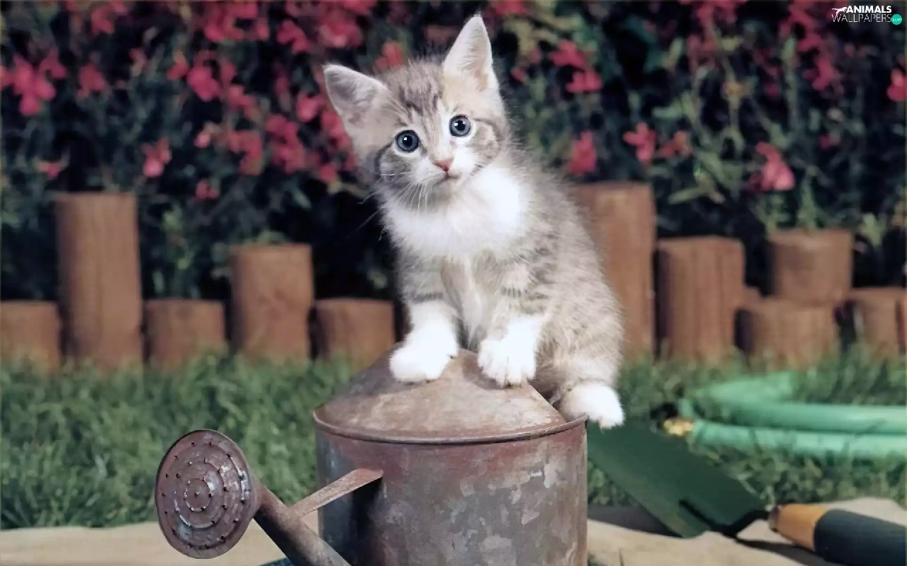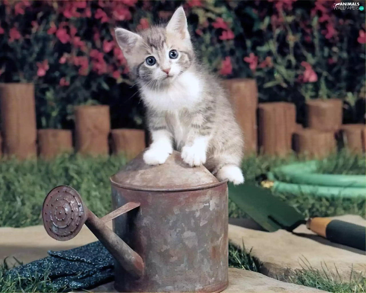 watering can, small, kitten