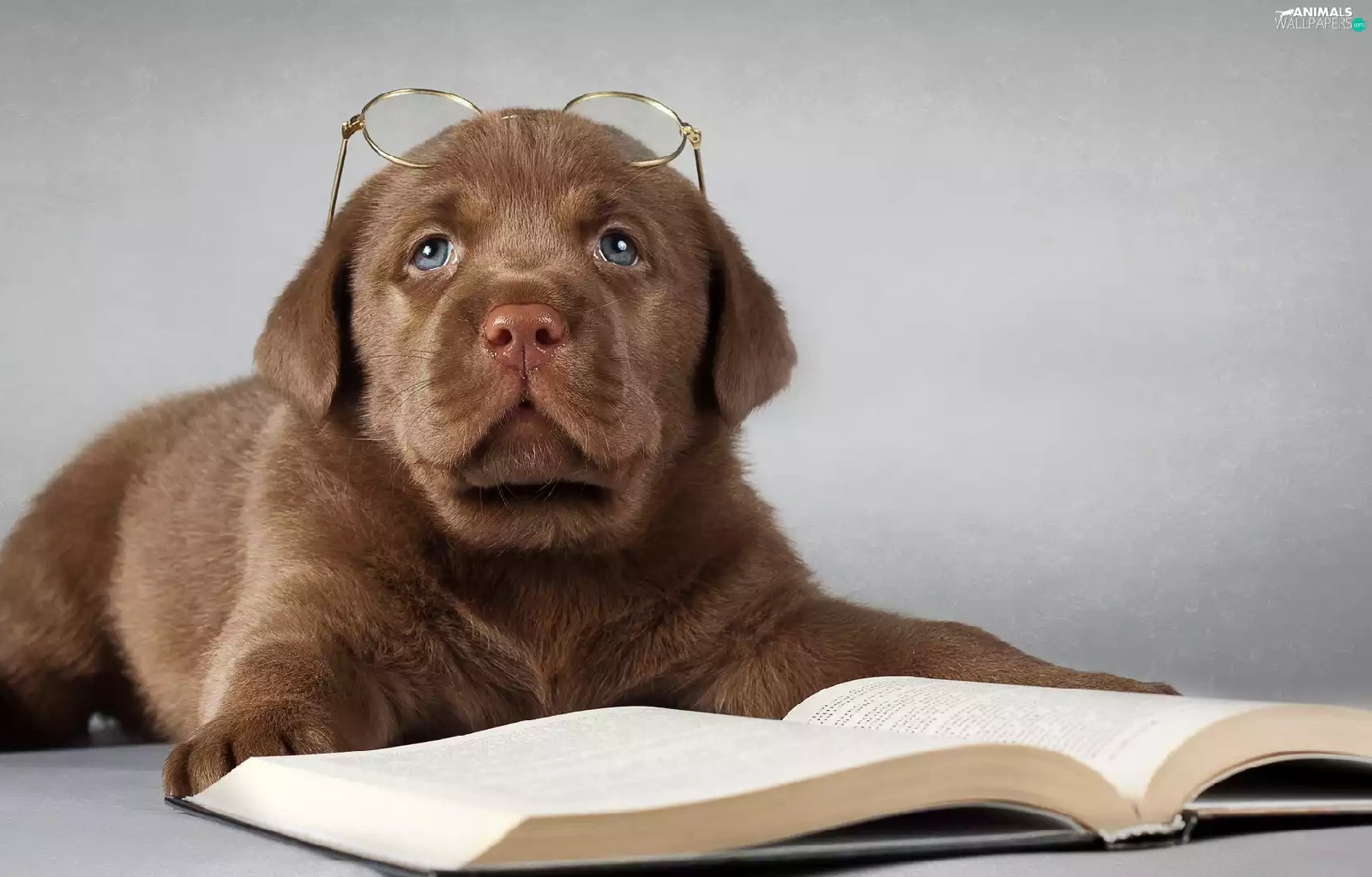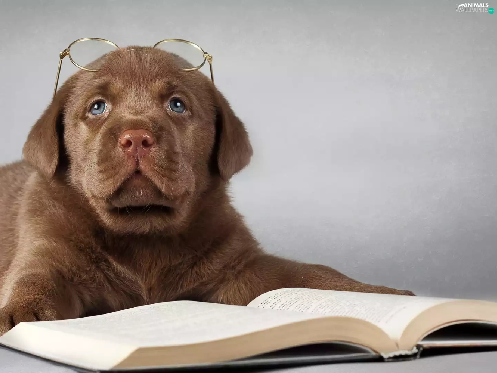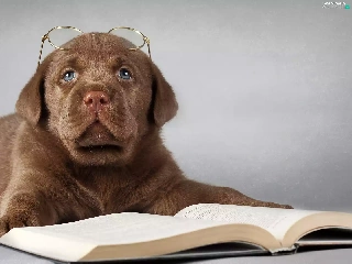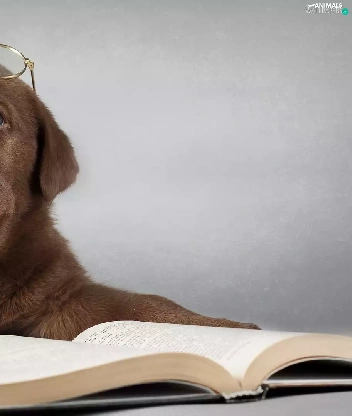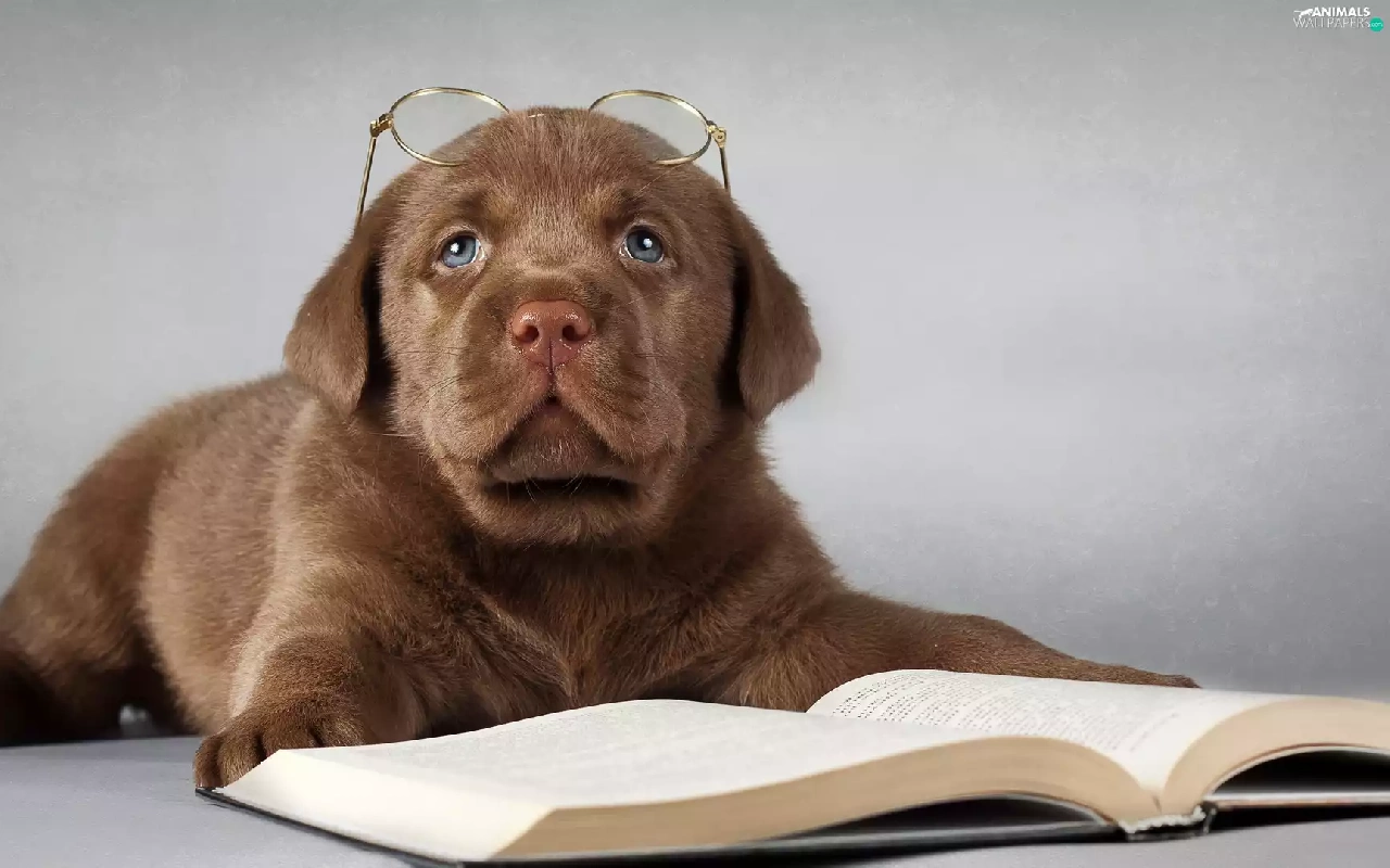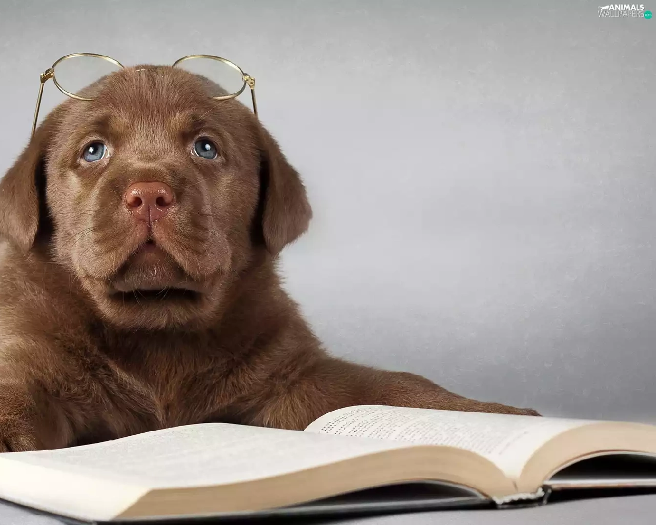 Book, Glasses, Puppy, Labrador Retriever, sad