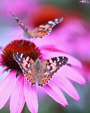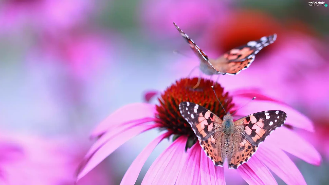 Pink, echinacea, Painted Lady, Flowers, butterflies