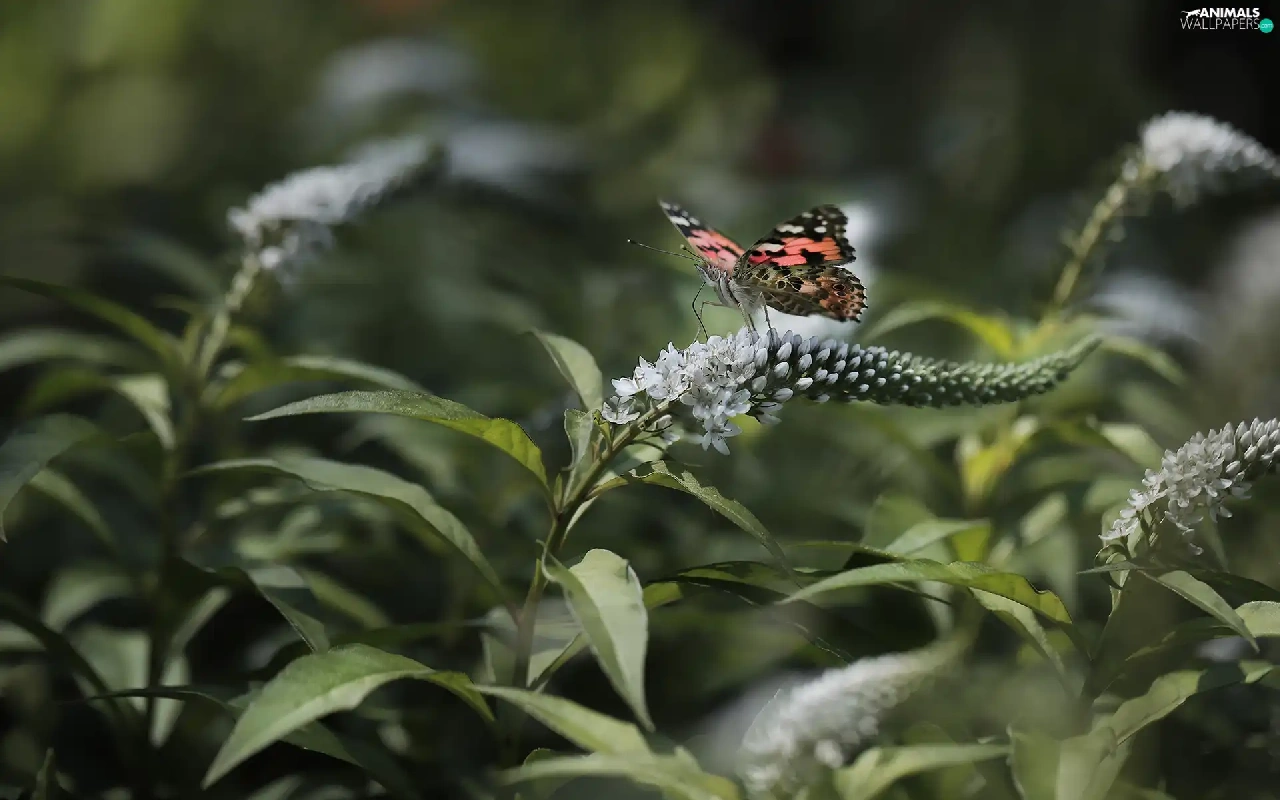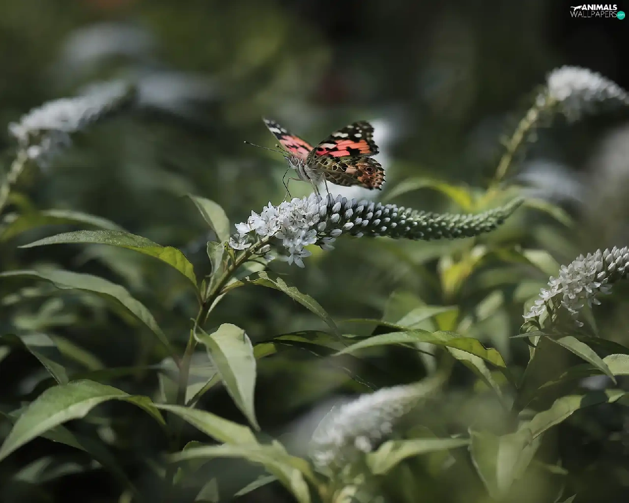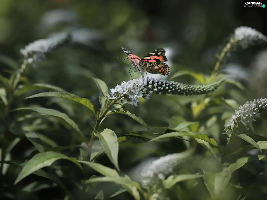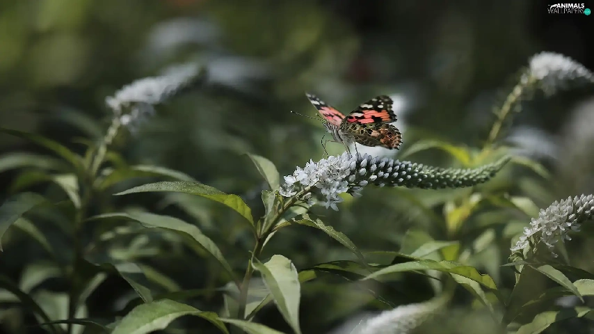 Flowers, Buddleia, Painted Lady, White, butterfly