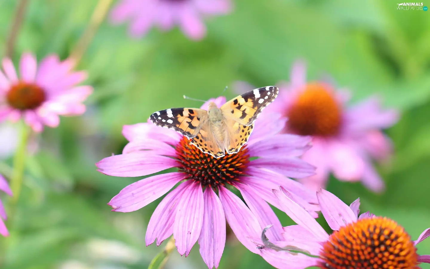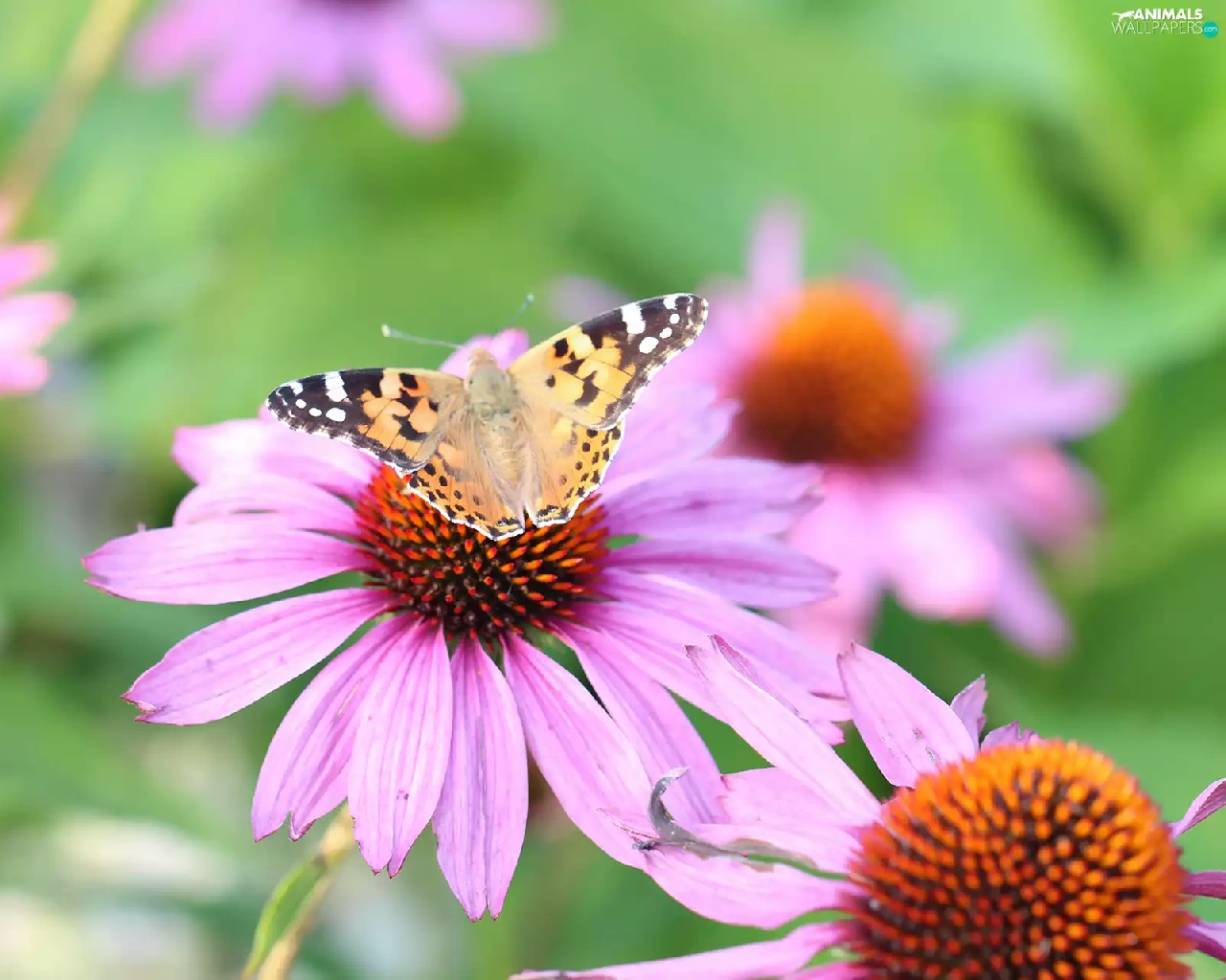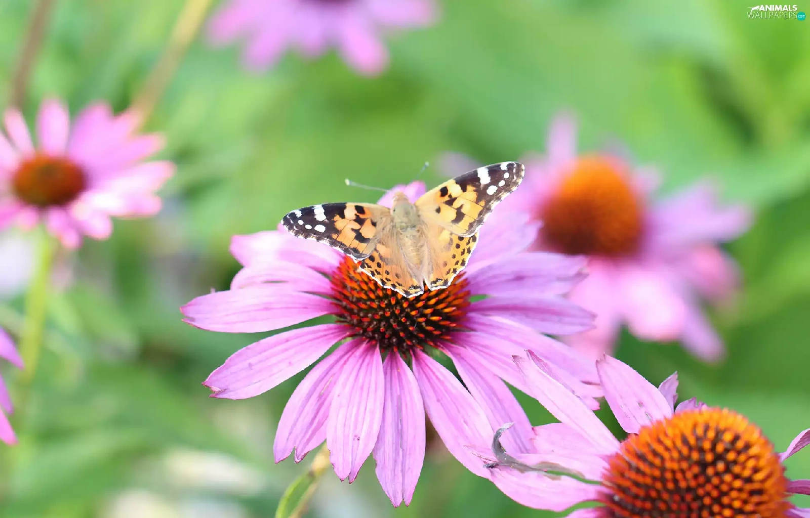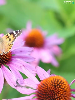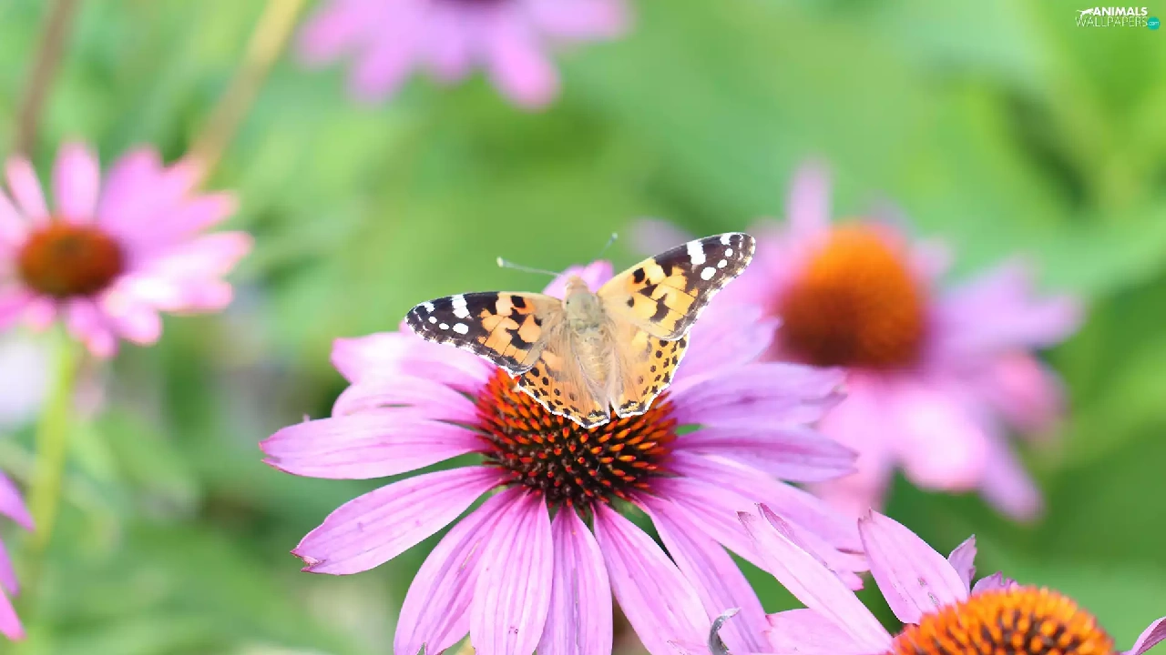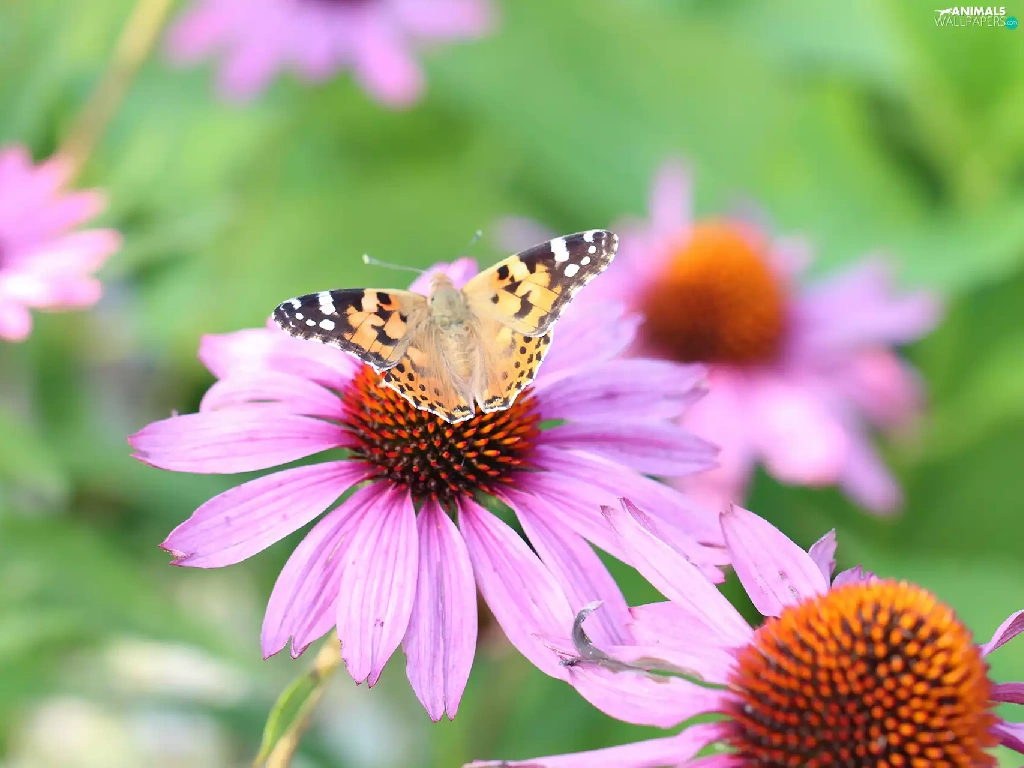 Painted Lady, Flowers, echinacea, butterfly