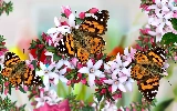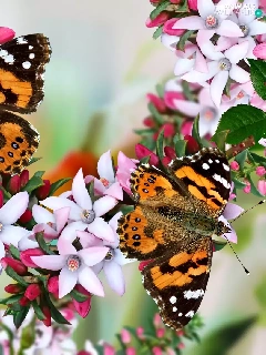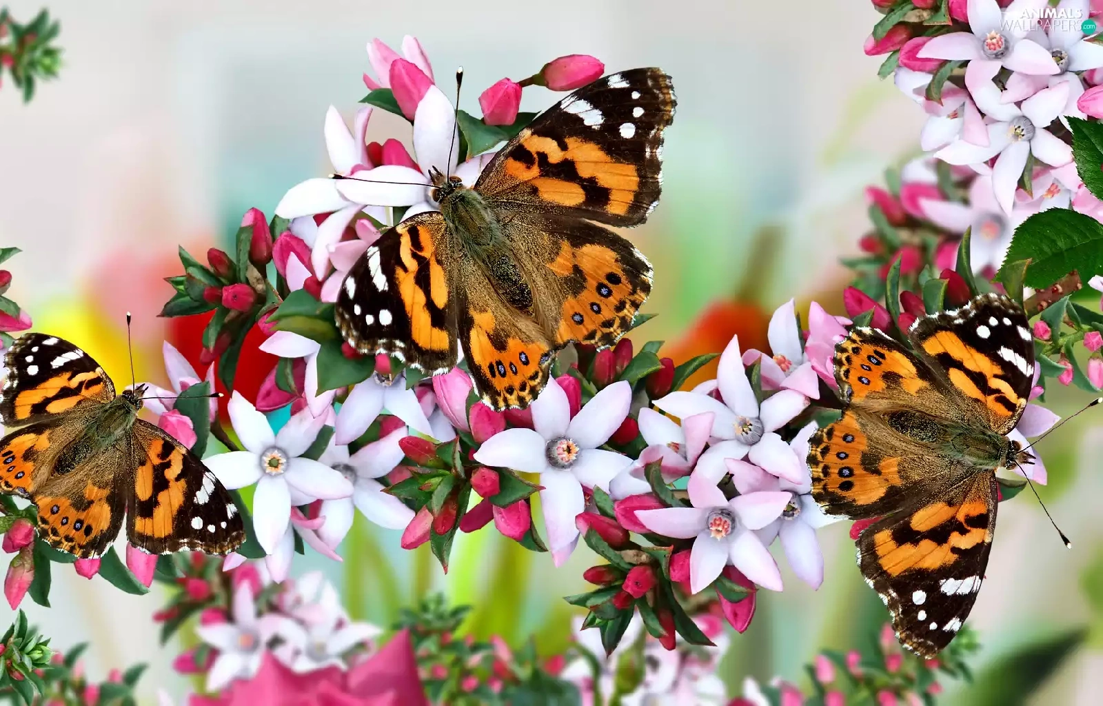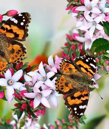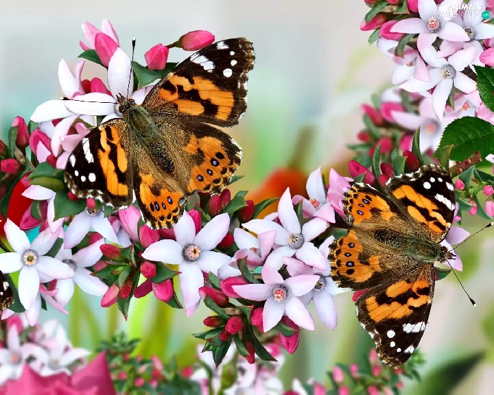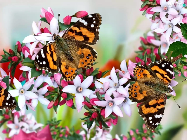 Buds, Pink, Painted Lady, graphics, butterflies, Flowers