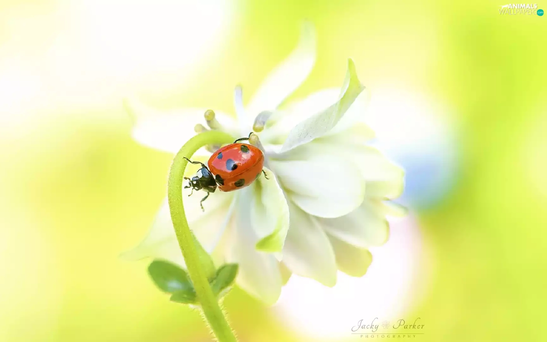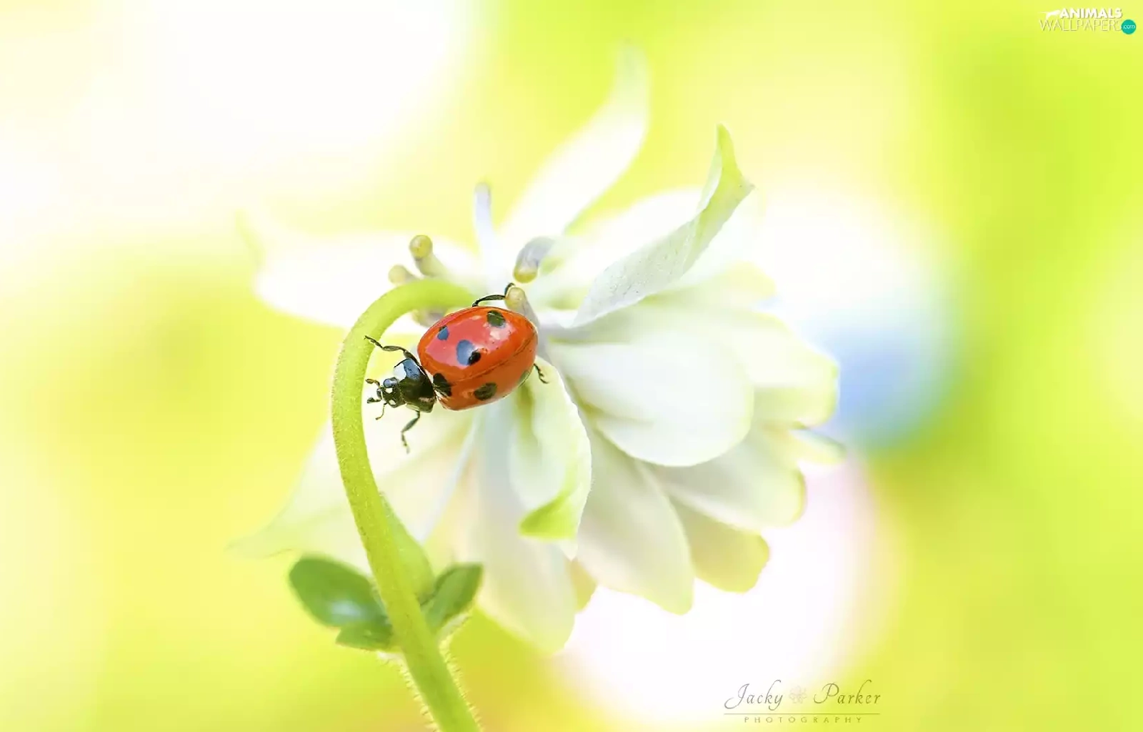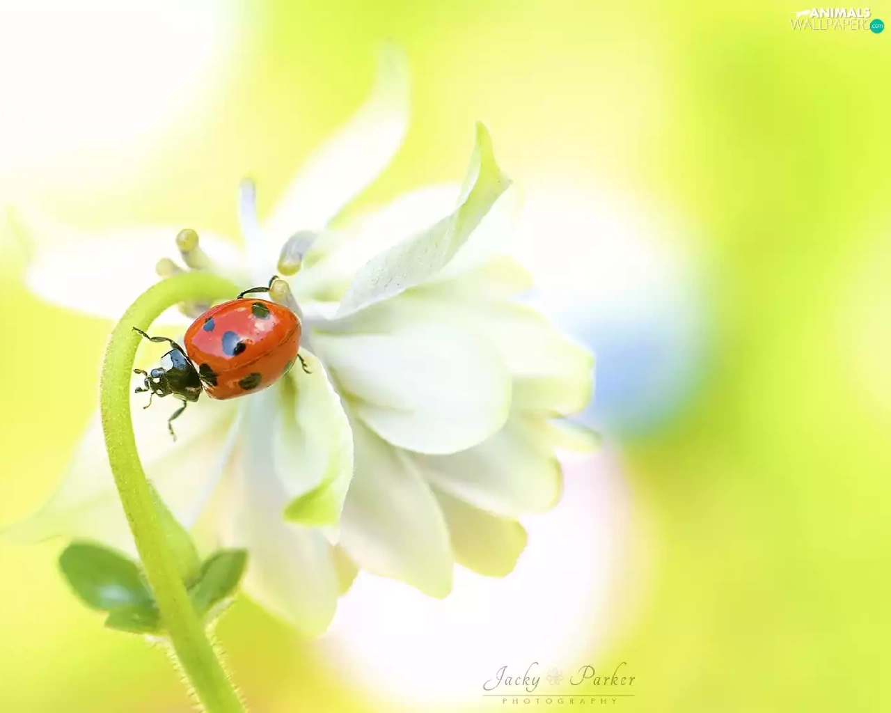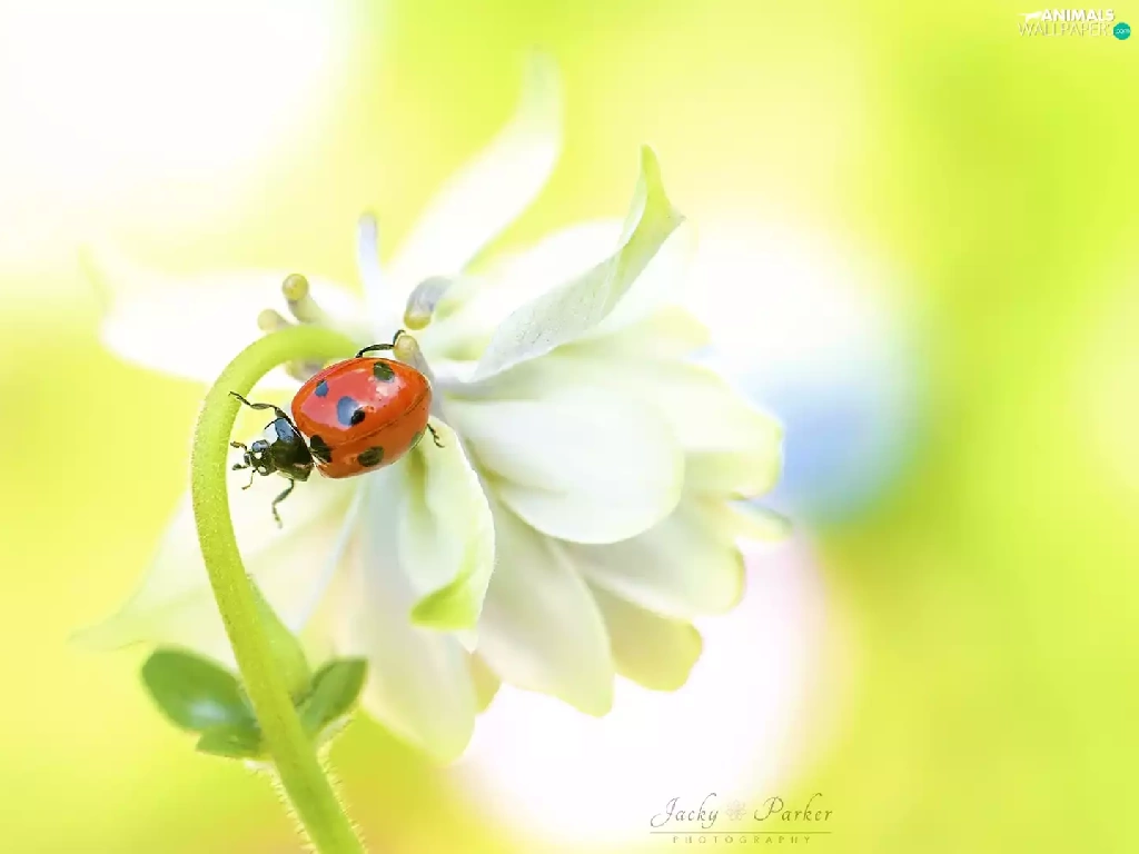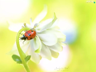 White, ladybird, Close, Colourfull Flowers