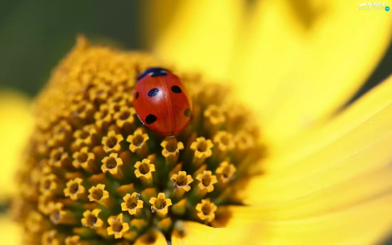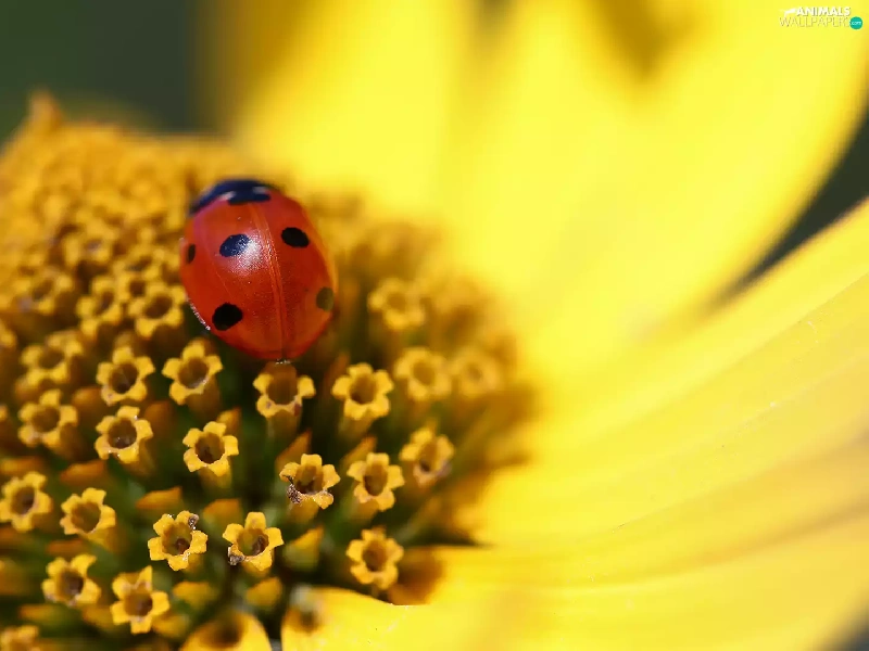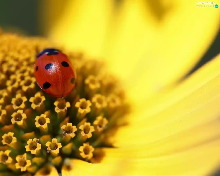 Colourfull Flowers, Close, ladybird, Insect, Sunflower Rough