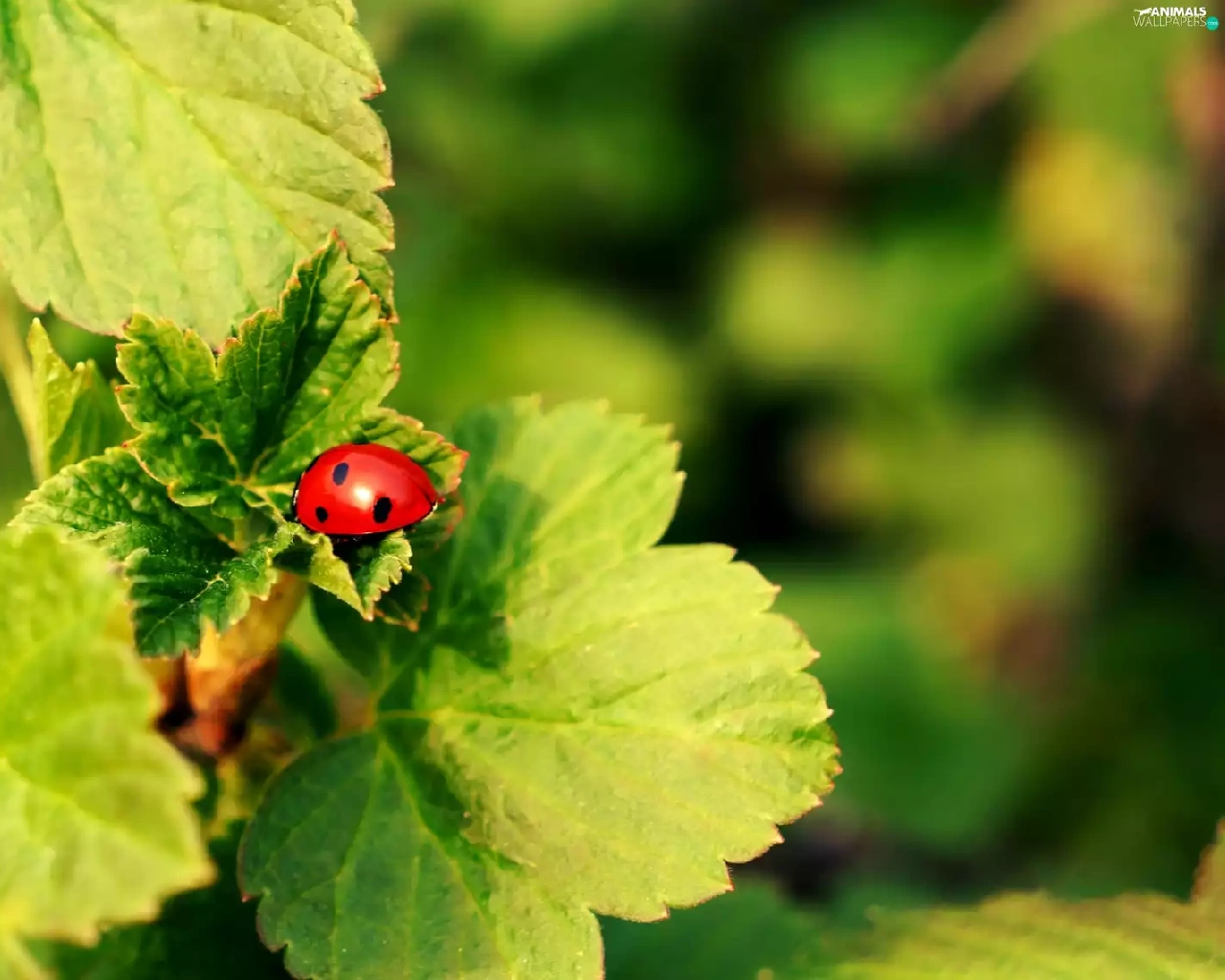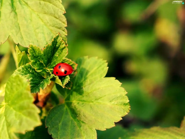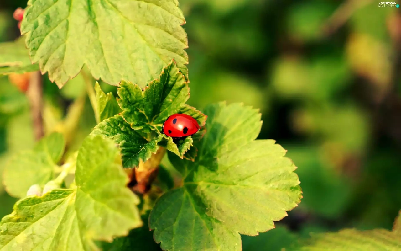 ladybird, twig, currants