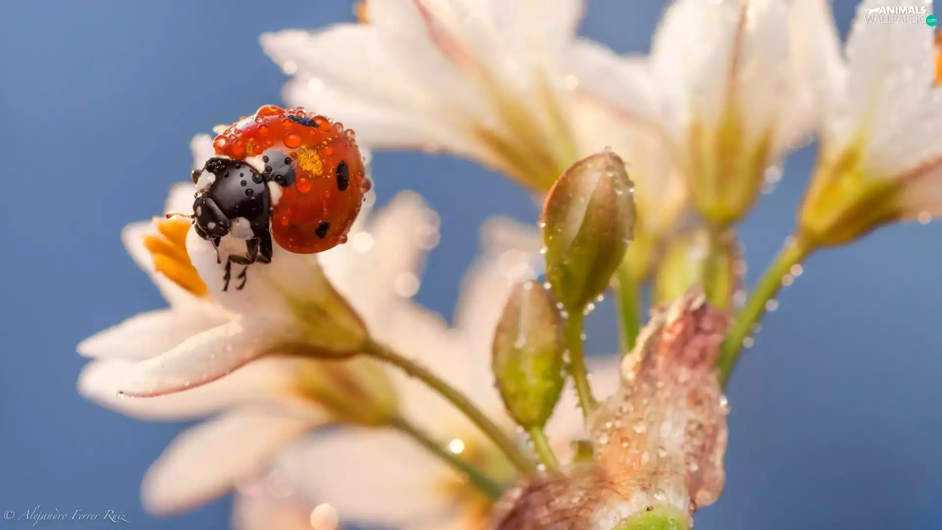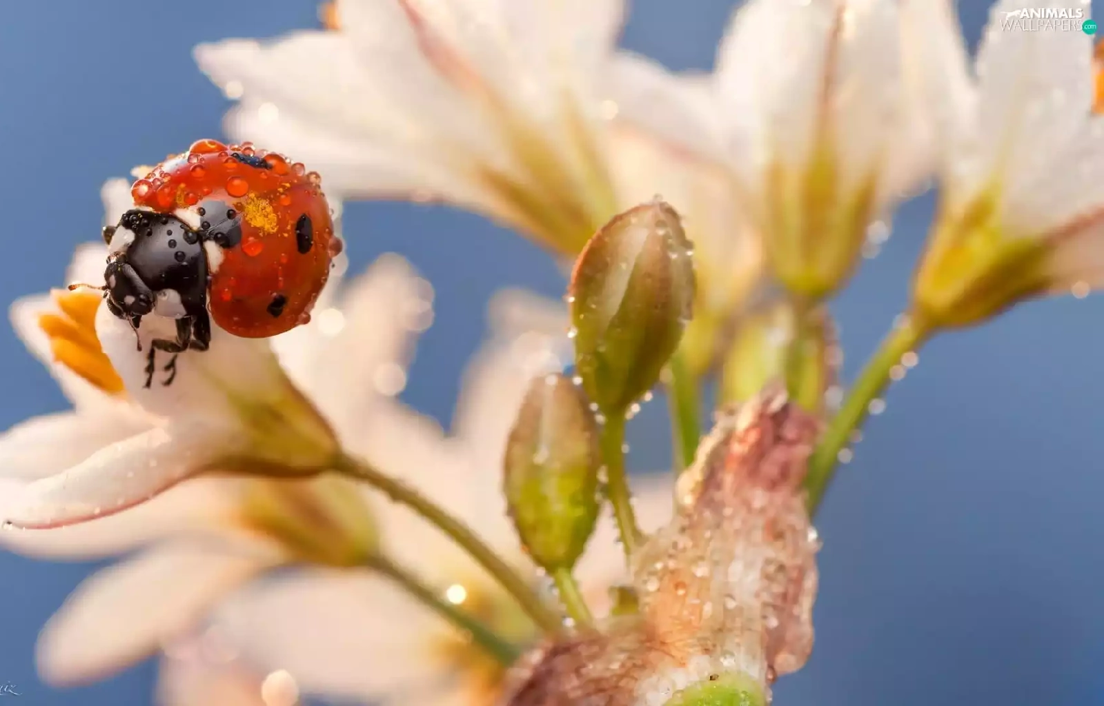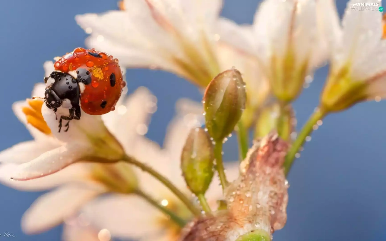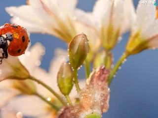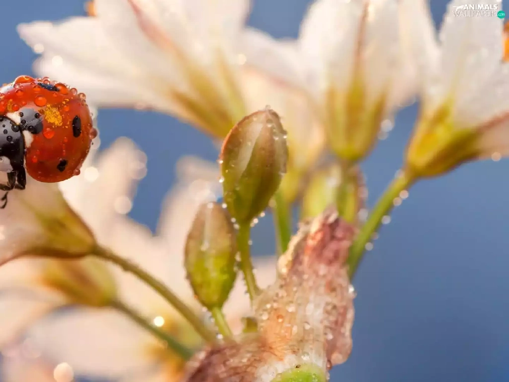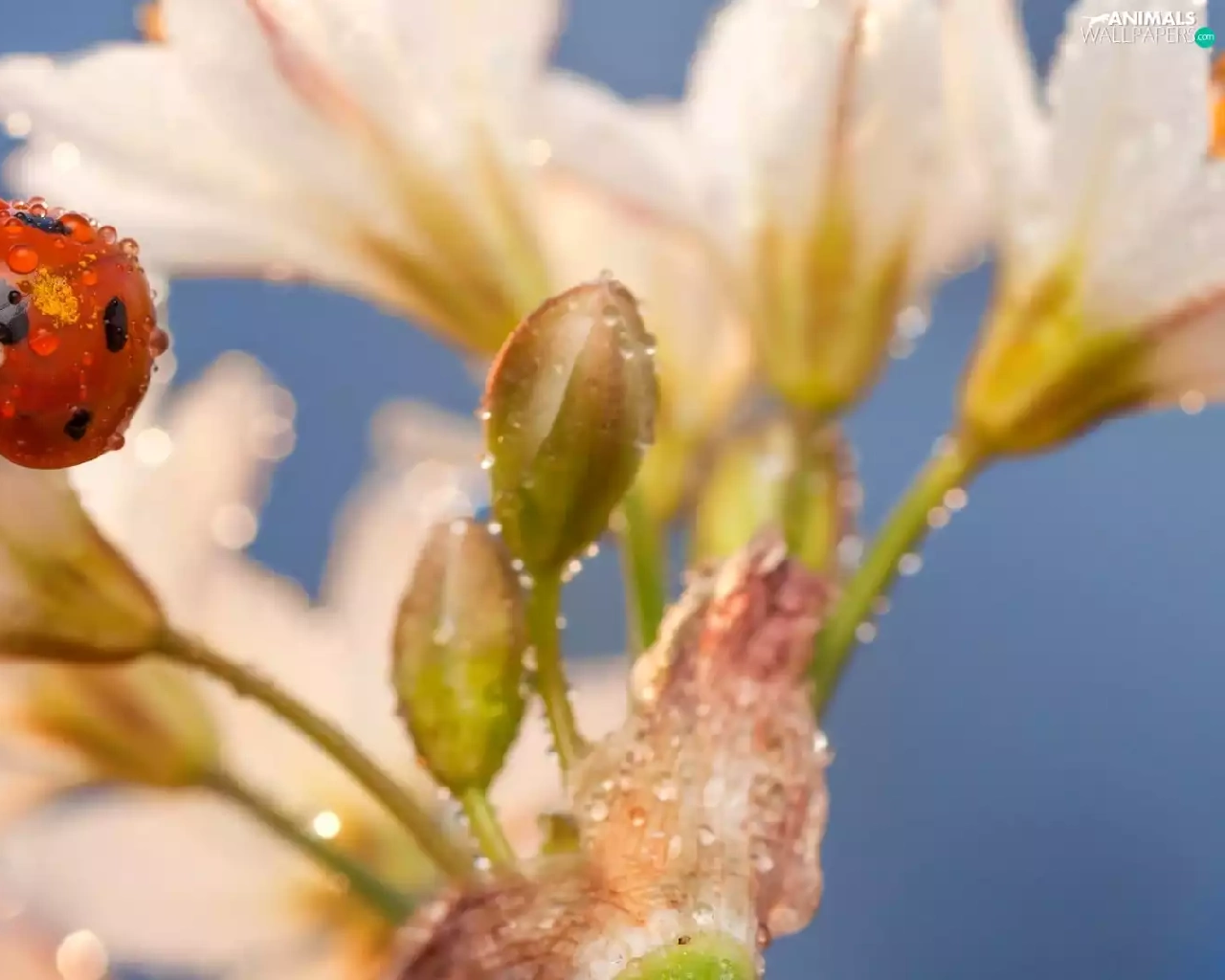 Lily, drops, water, ladybird